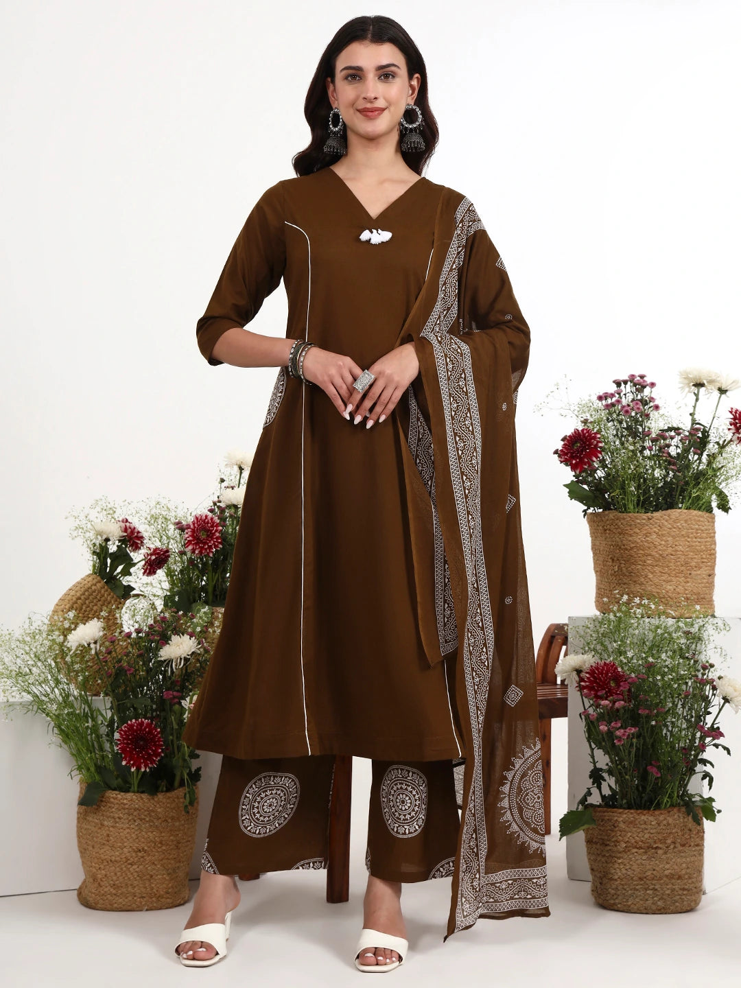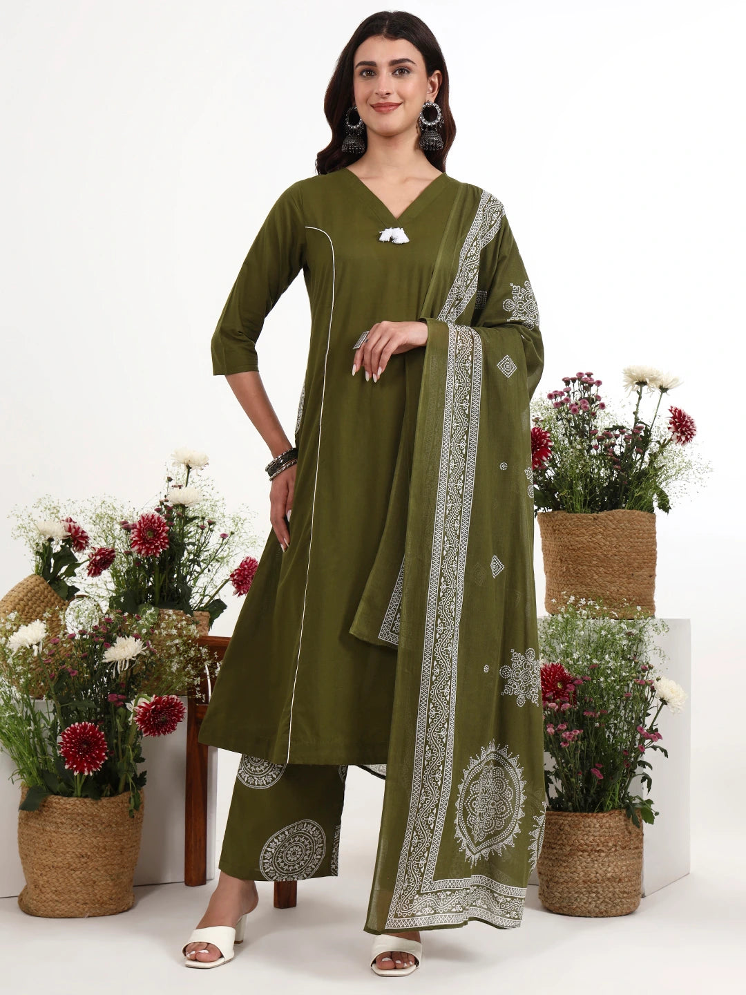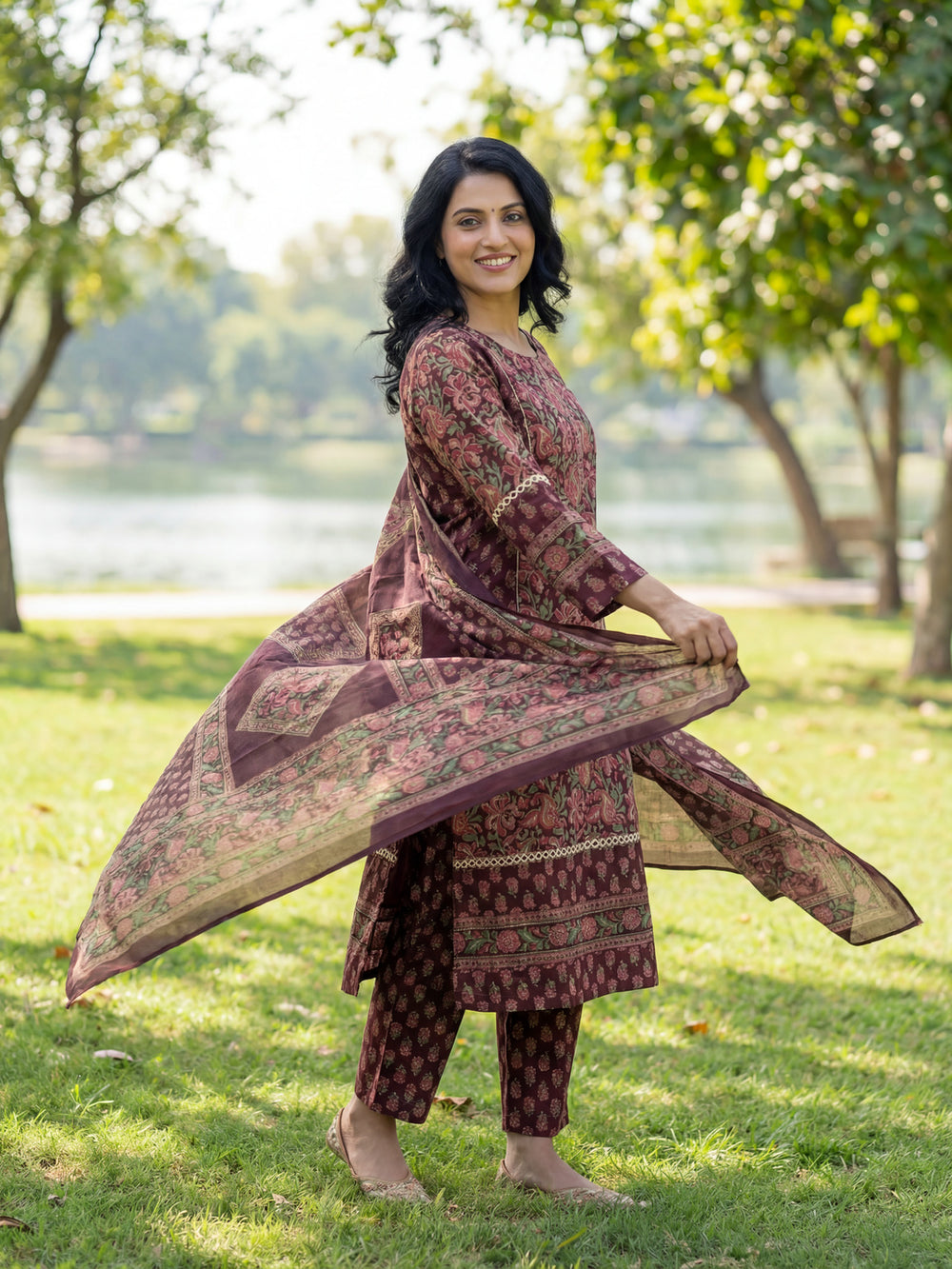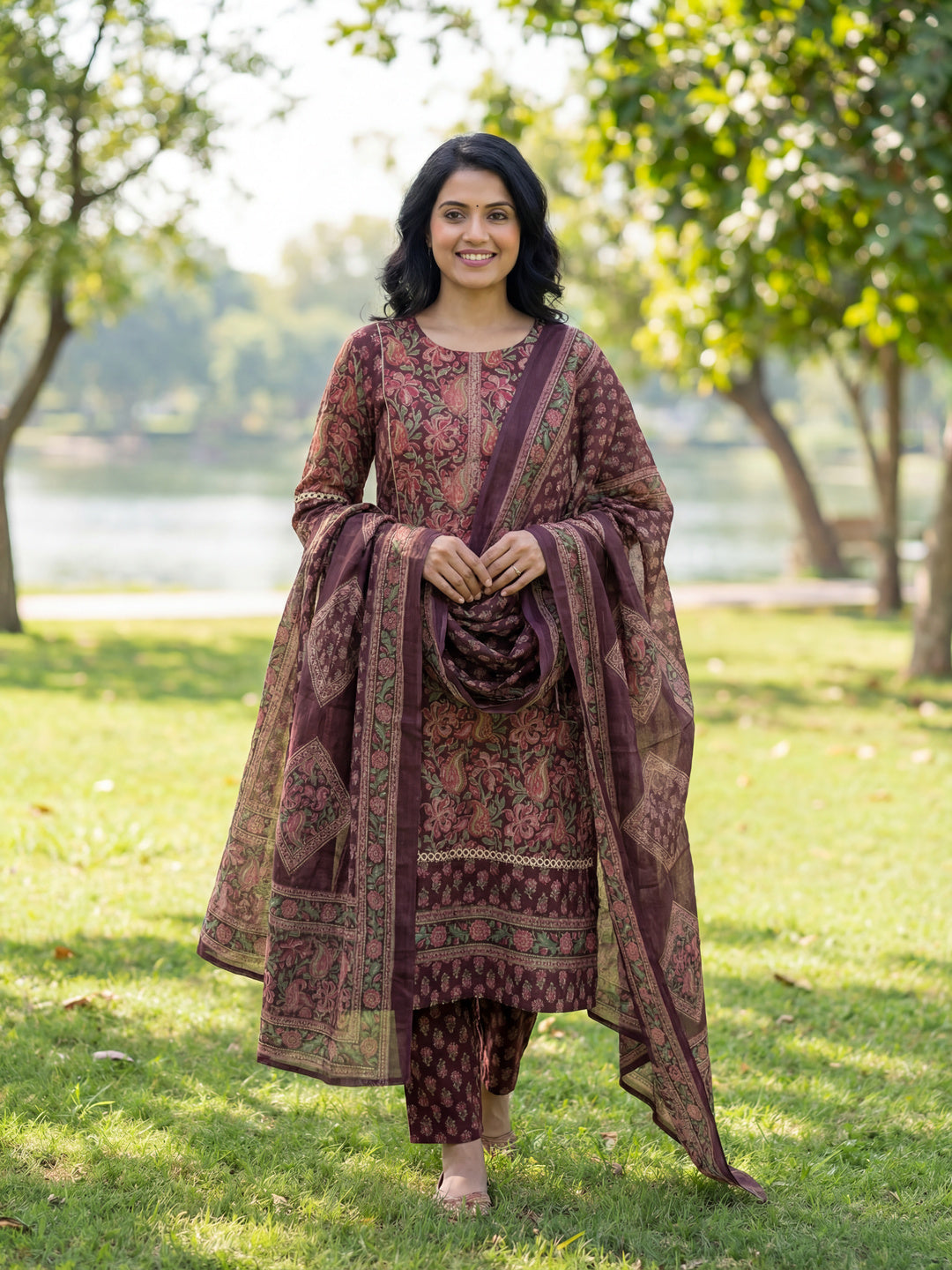Elevate your ethnic wardrobe with our premium kurta set with dupatta that combine comfort and elegance. Crafted with a variety of fabrics and adorned with exquisite prints, patterns, and embroidery, these suits are perfect for all occasions.