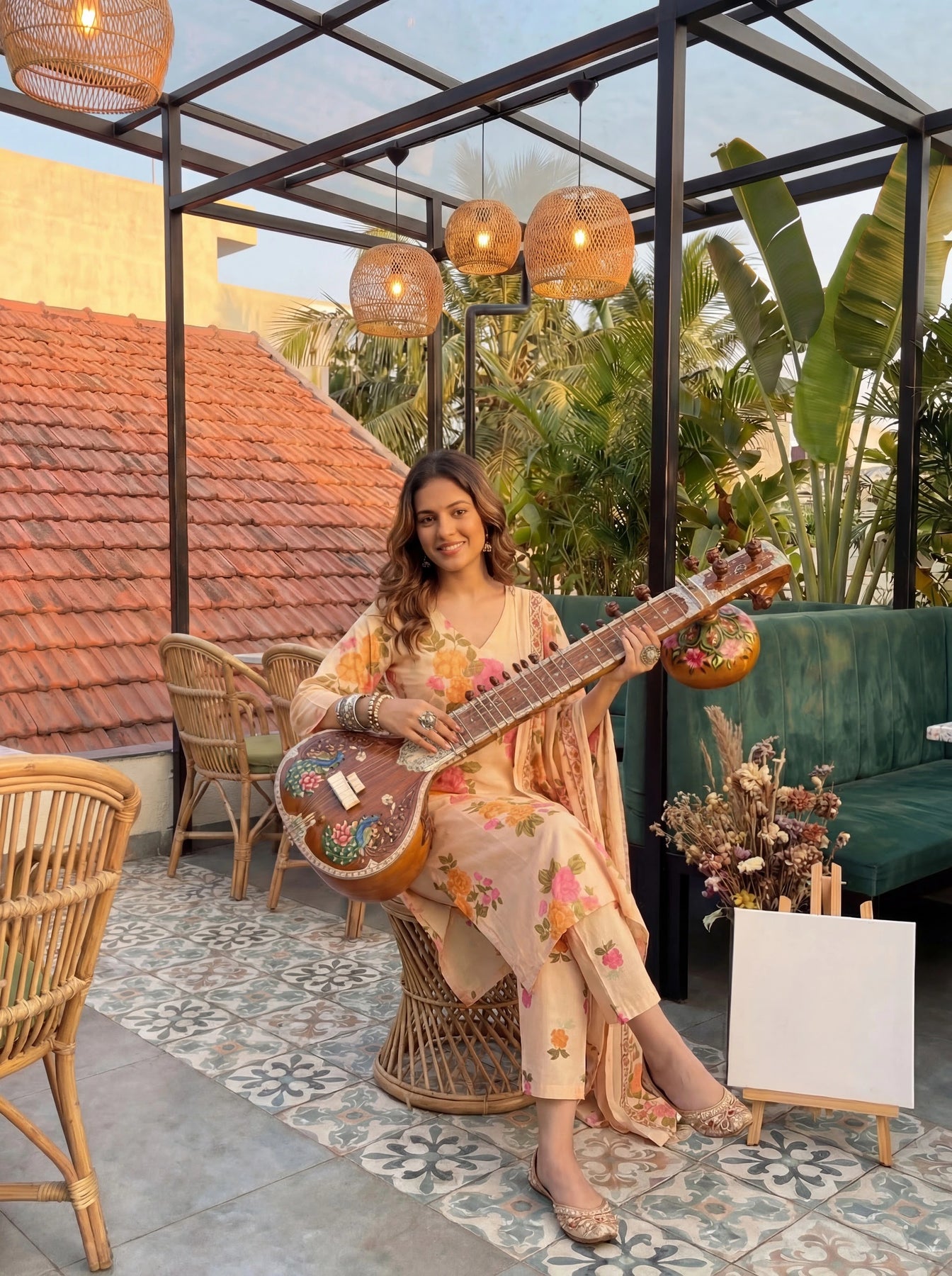 Peach-coloured Printed Kurta with Trousers With Dupatta