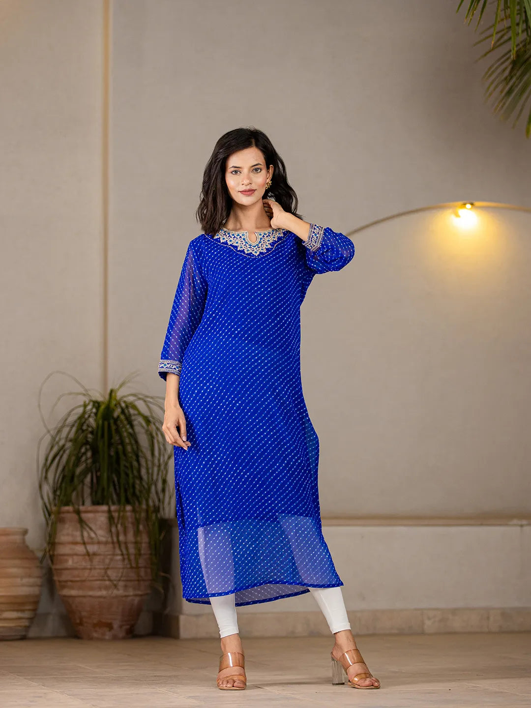 Blue Georgette Lehriya Embroidery Kurta