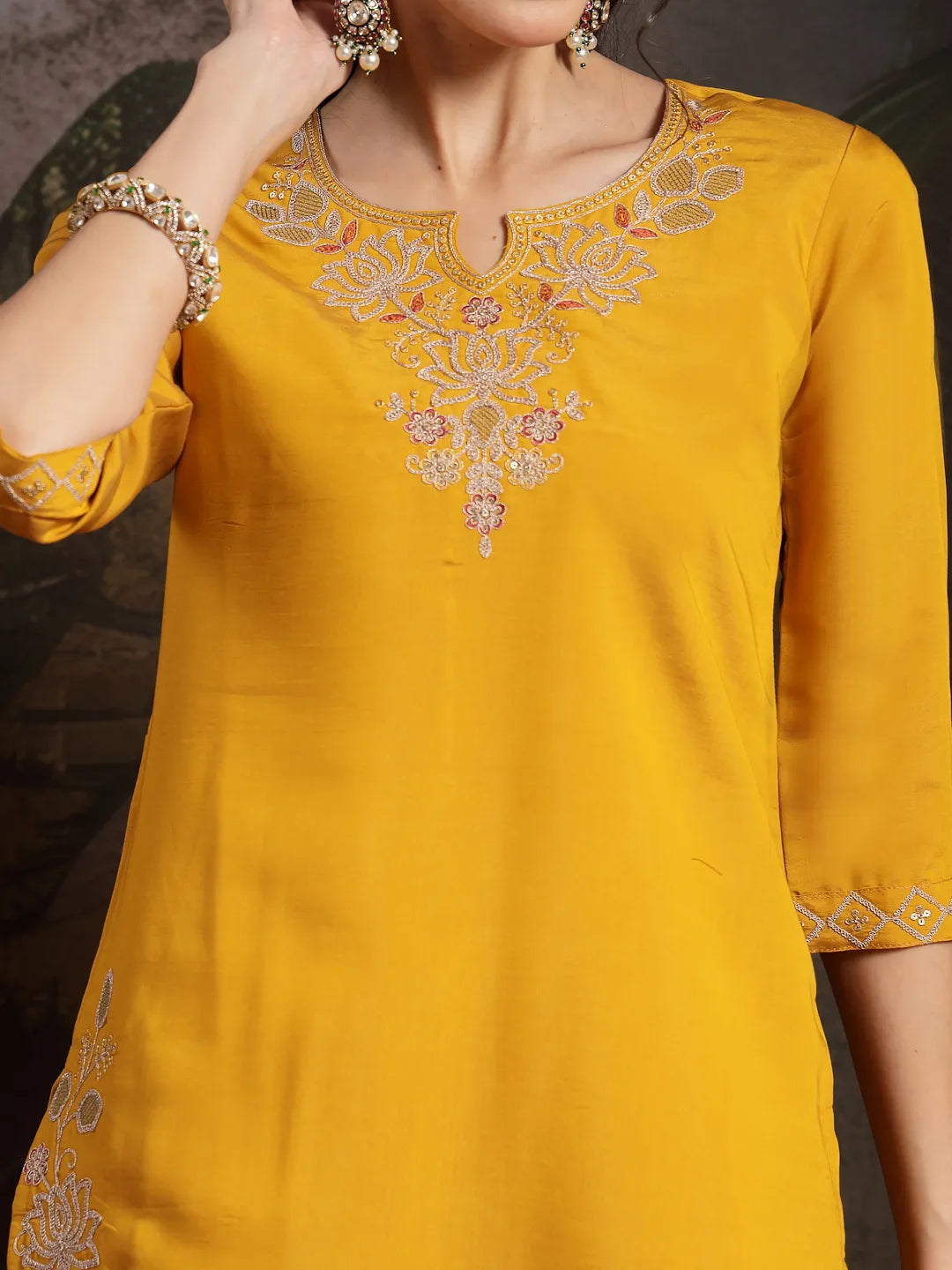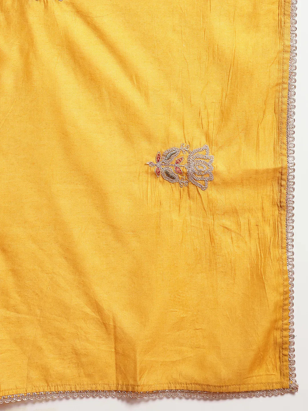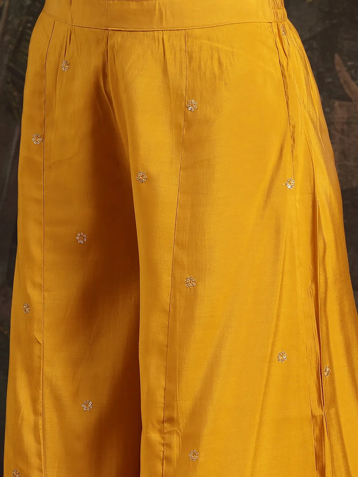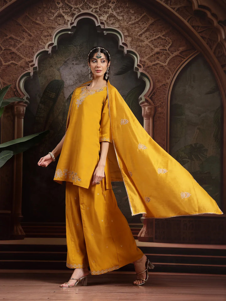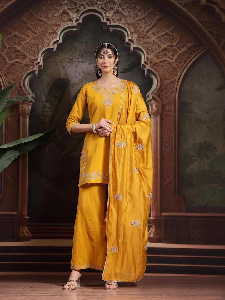 Yellow Embroidered Straight Kurta Palazzo Dupatta Set