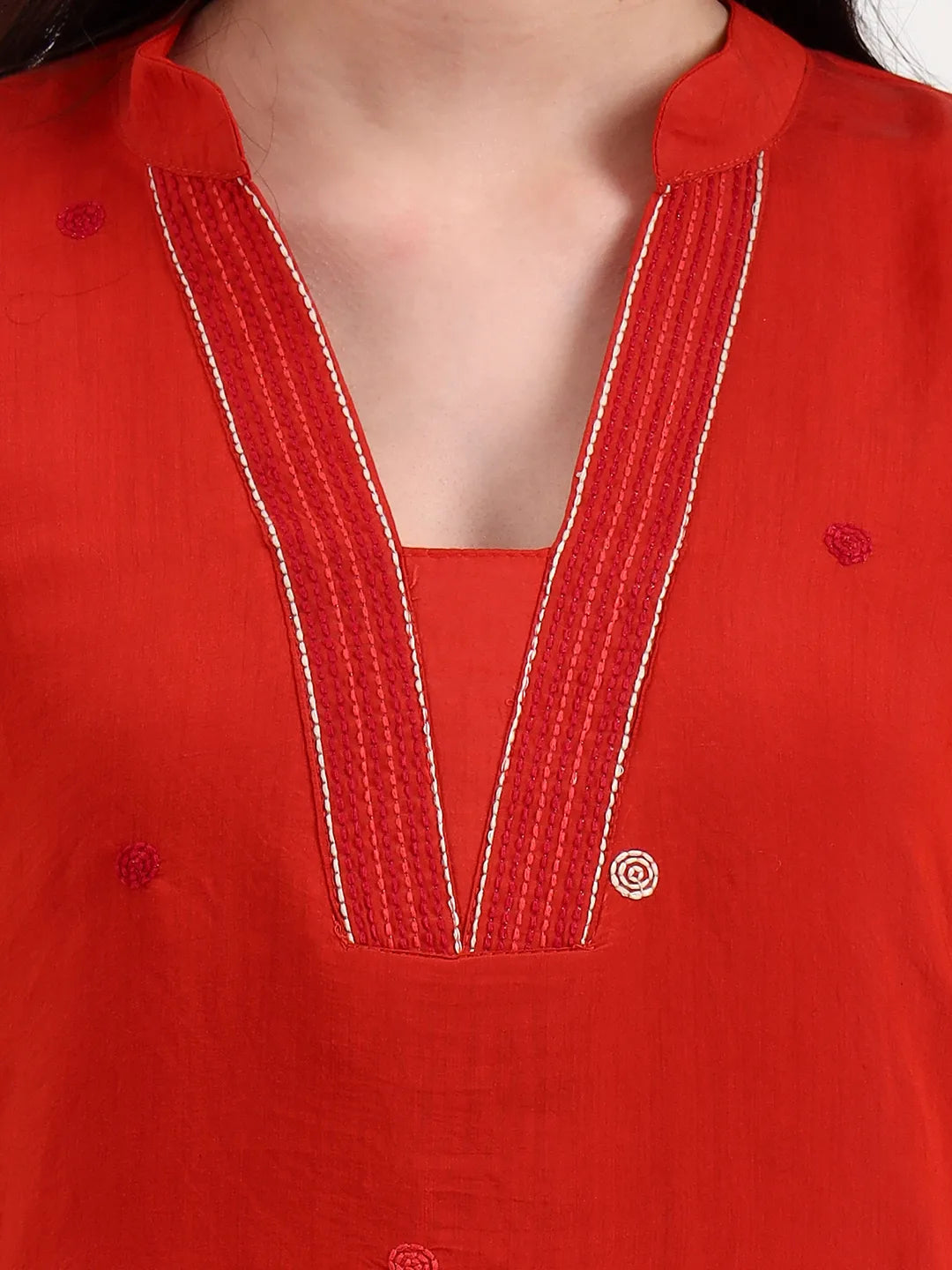 Red embroidered Kurta with Trousers with dupatta
