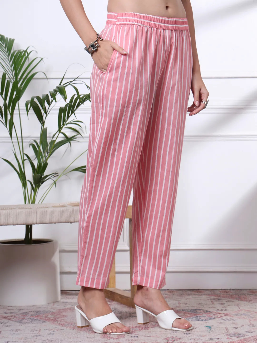 Pink Floral Print Thread Work Straight Kurta Trouser Dupatta Set