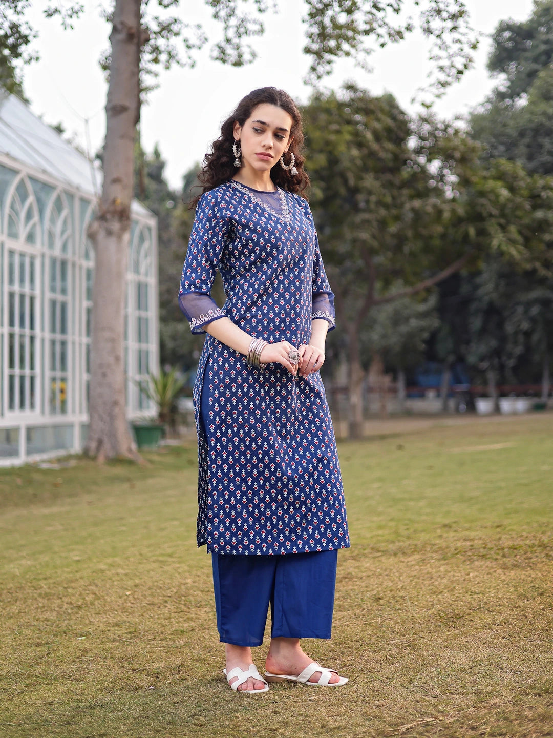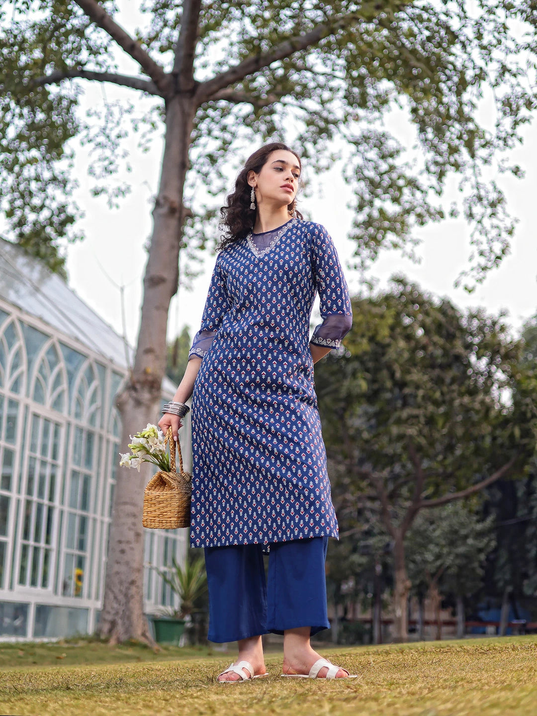 Blue printed Kurta with Palazzos