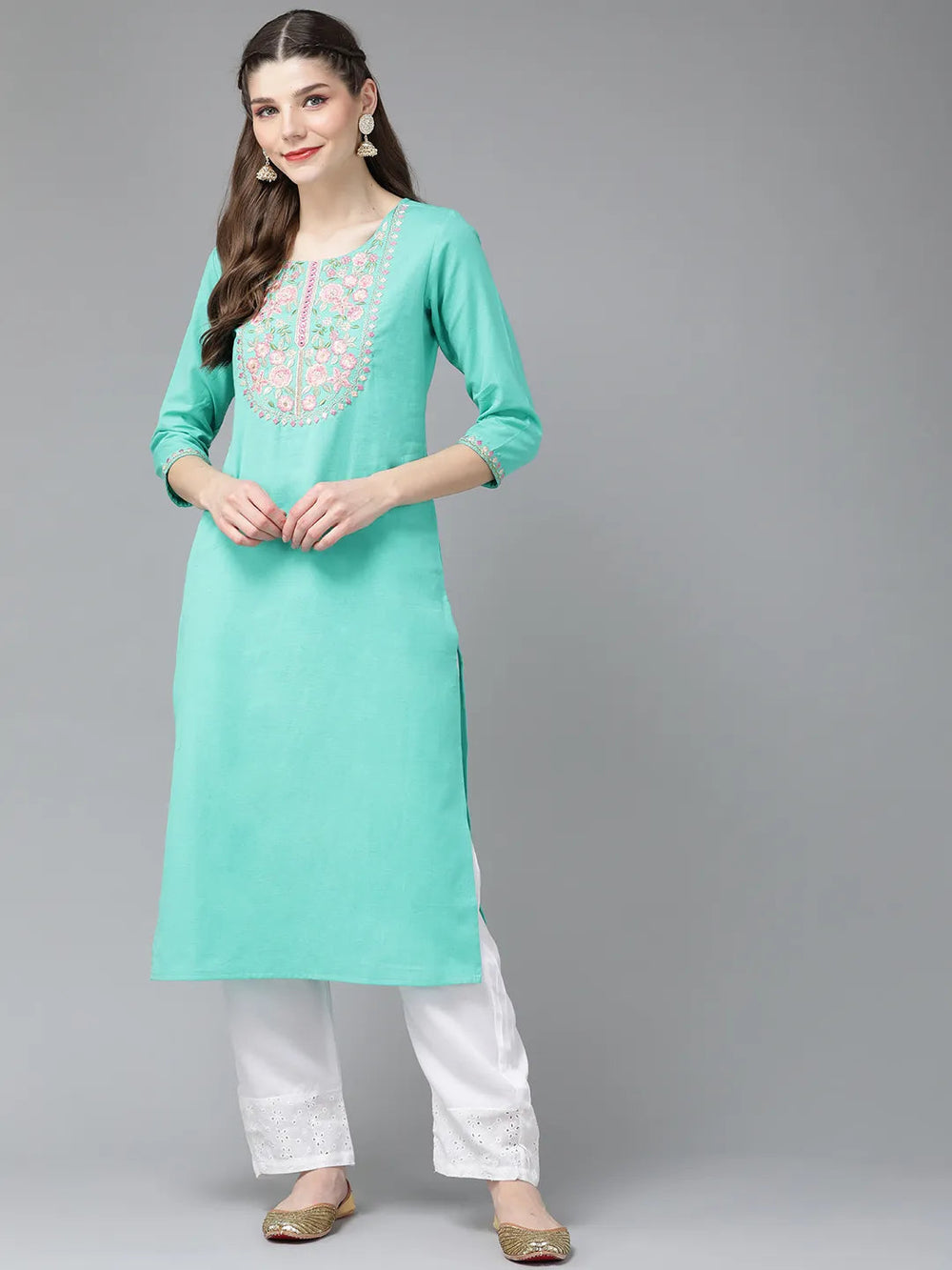 Yufta has a large collection of embroidered kurtas sorted with different print, patterns and styles. But it always comes to color when it comes to purchase one. Not to worry as they have got you covered. Spreading light to the embroidered kurtas for women online yufta has curated a collection of bright colors to make you look the real you. Get your beloved colors in embroidered kurtas from yufta.
