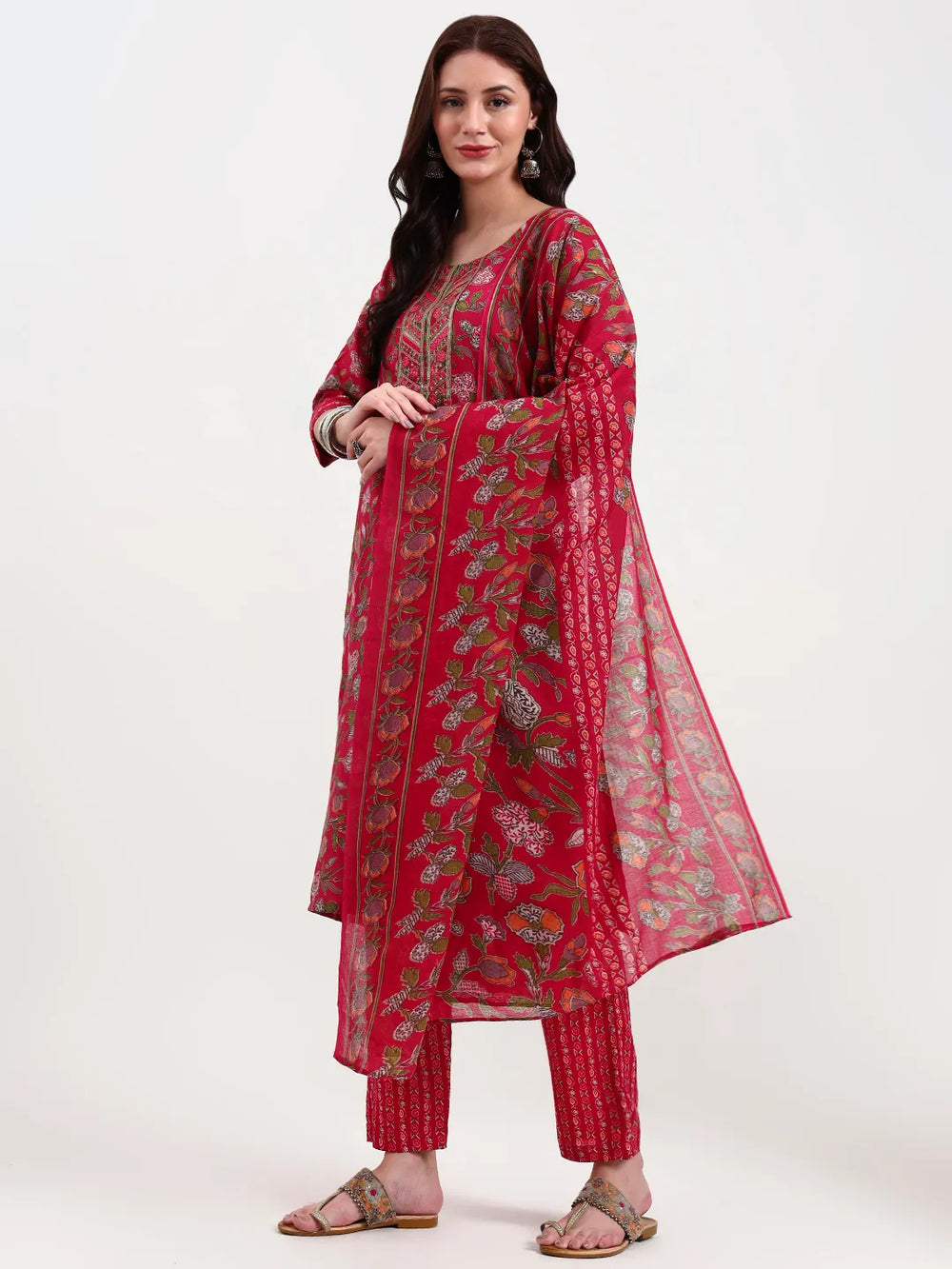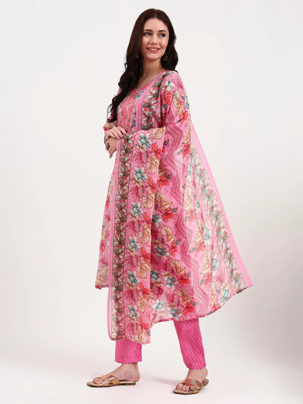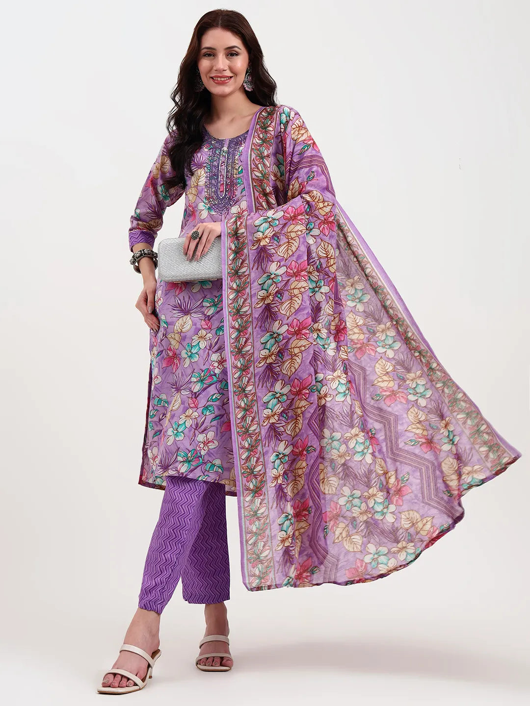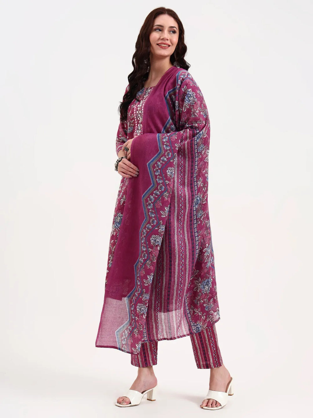 Purple Dori Embroidery A-Line Kurta Trouser Dupatta Set