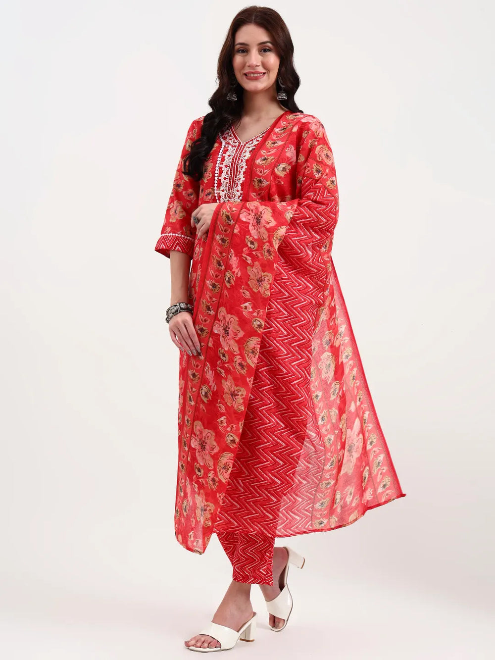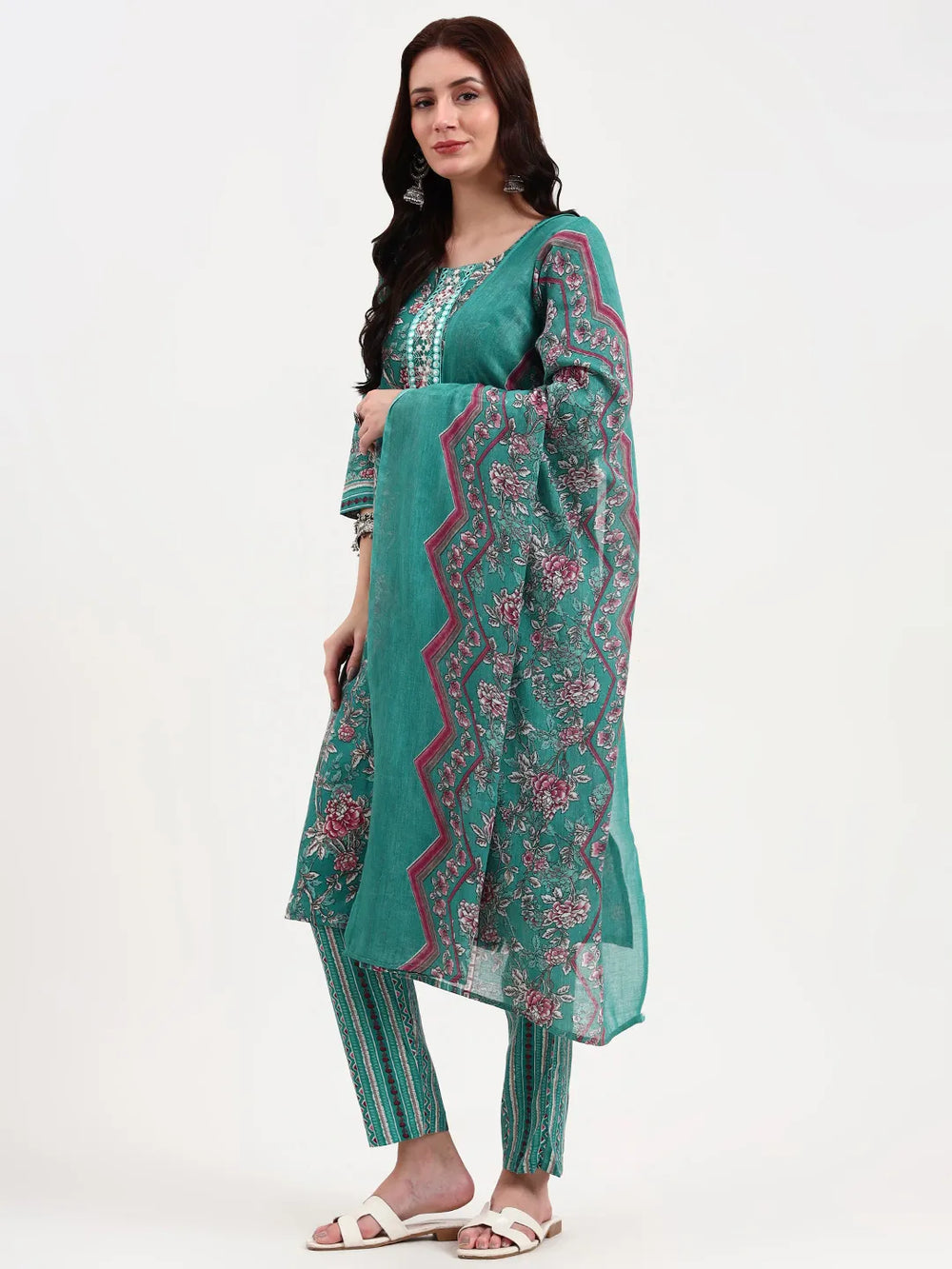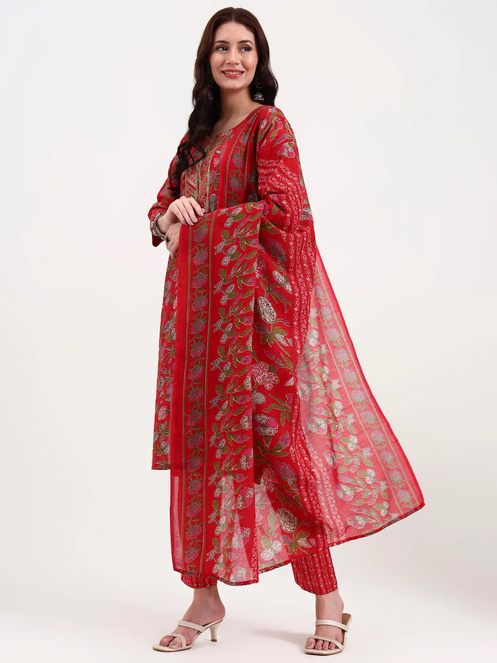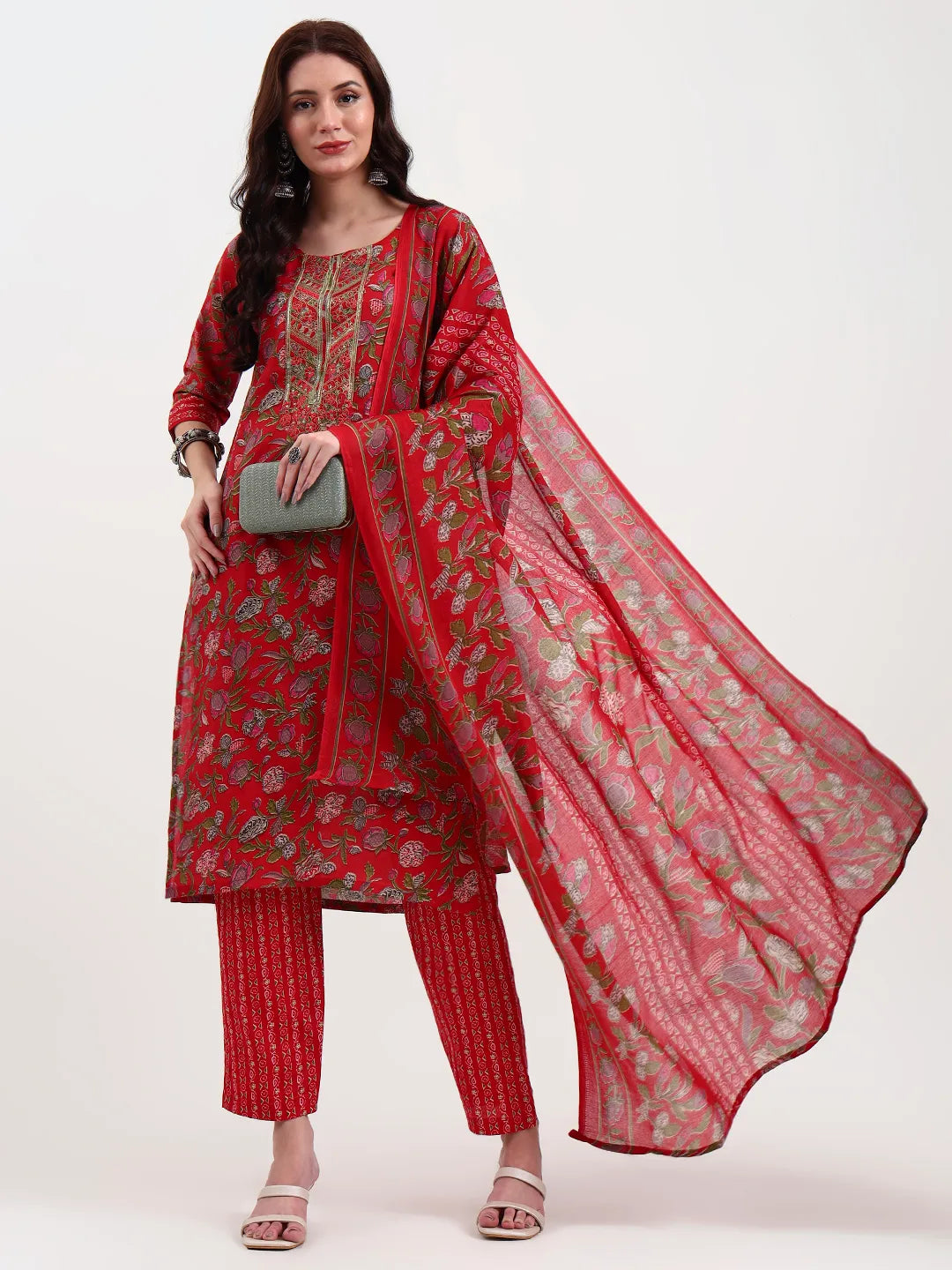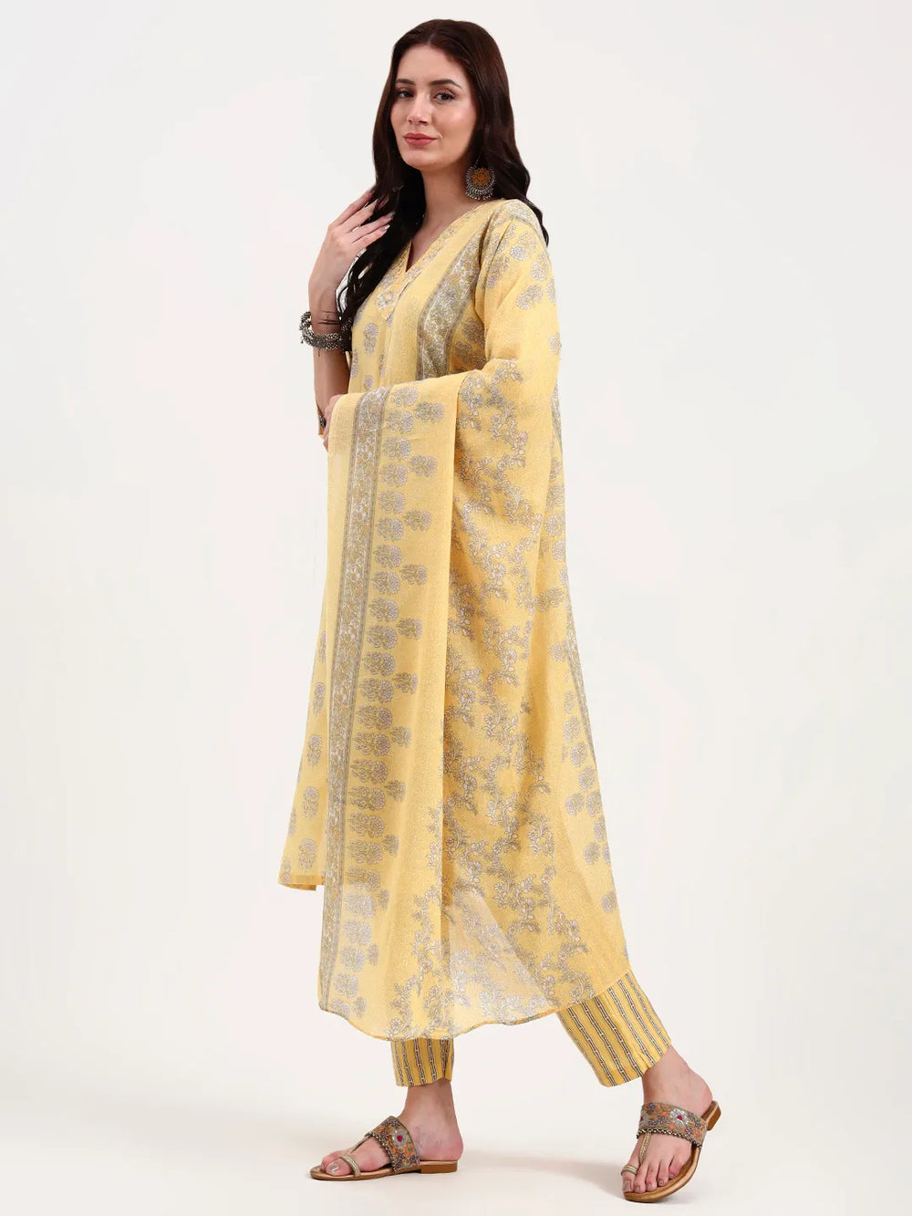 Purple Dori Embroidery A-Line Kurta Trouser Dupatta Set