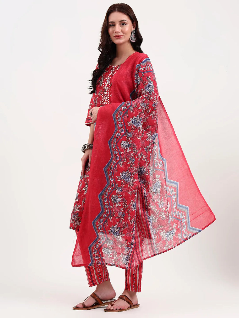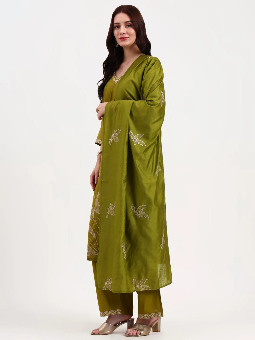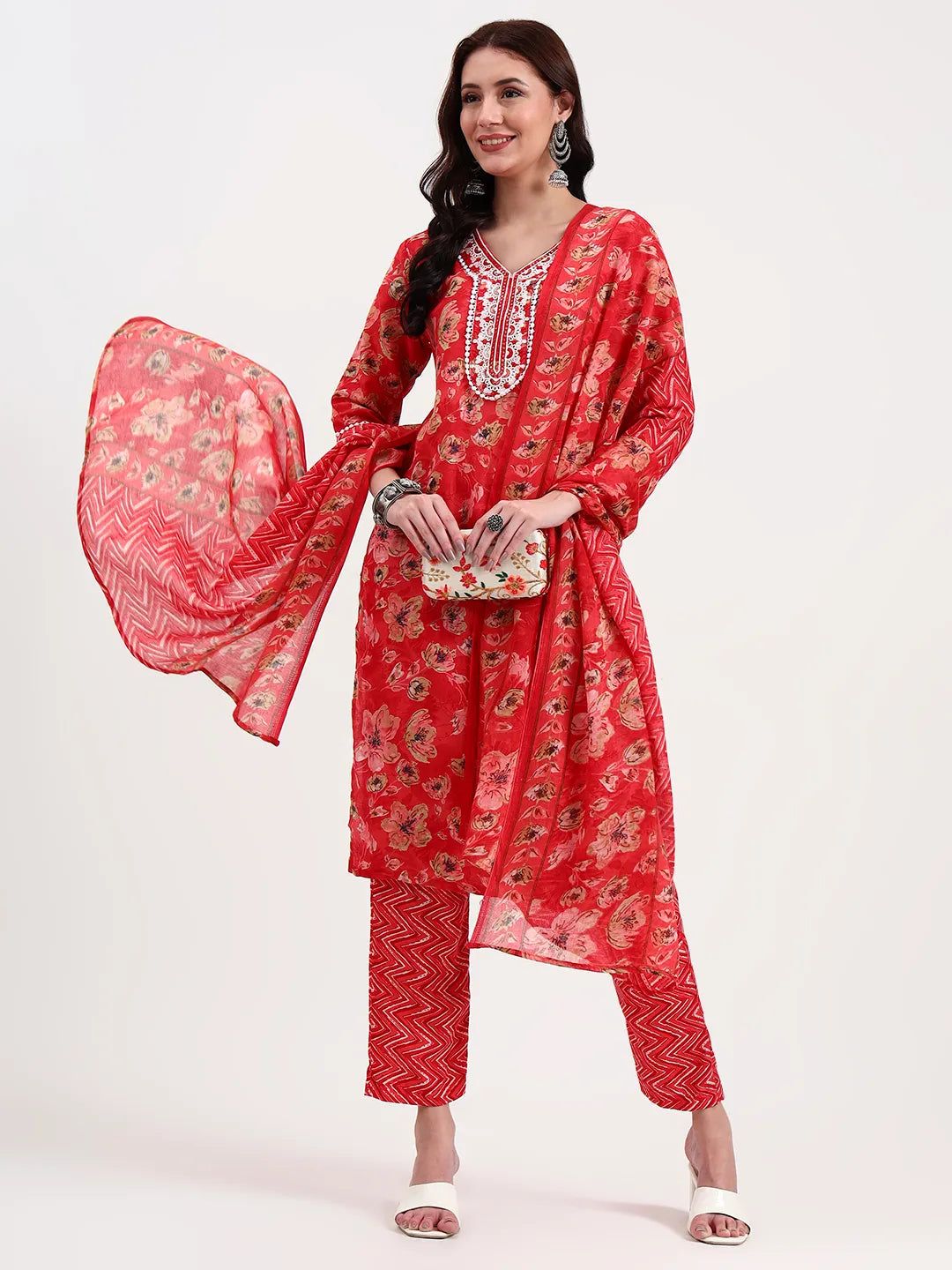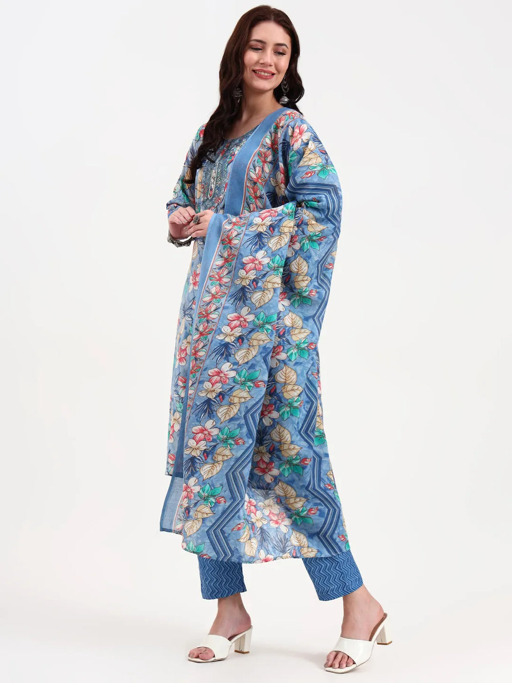 Purple Dori Embroidery A-Line Kurta Trouser Dupatta Set
