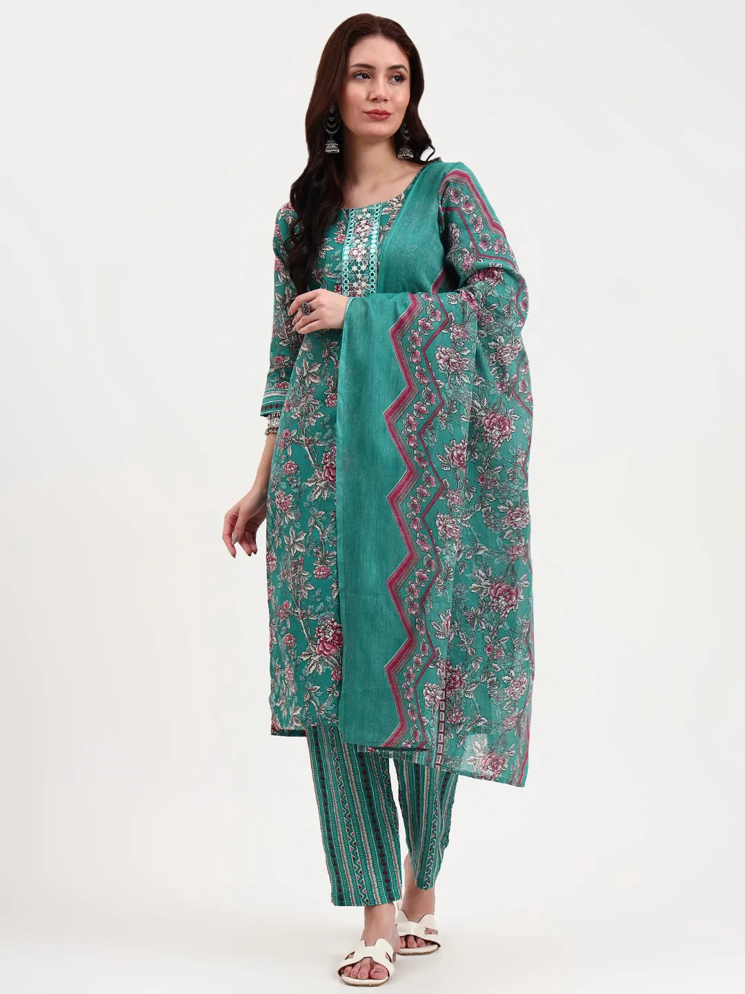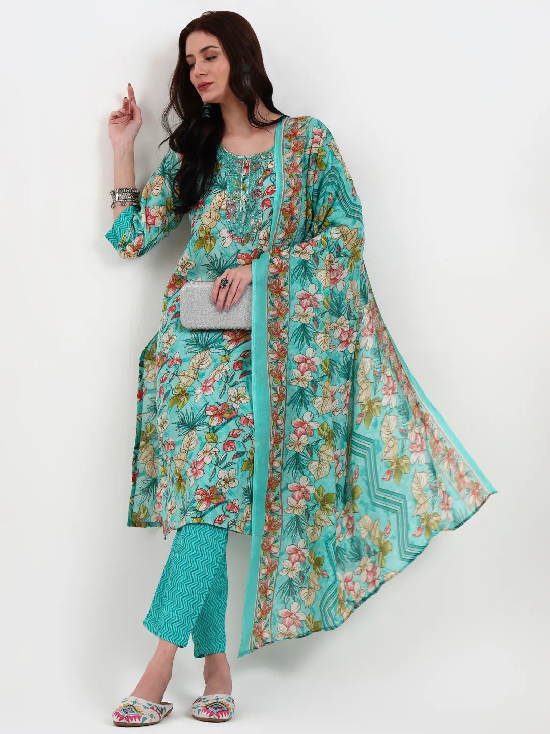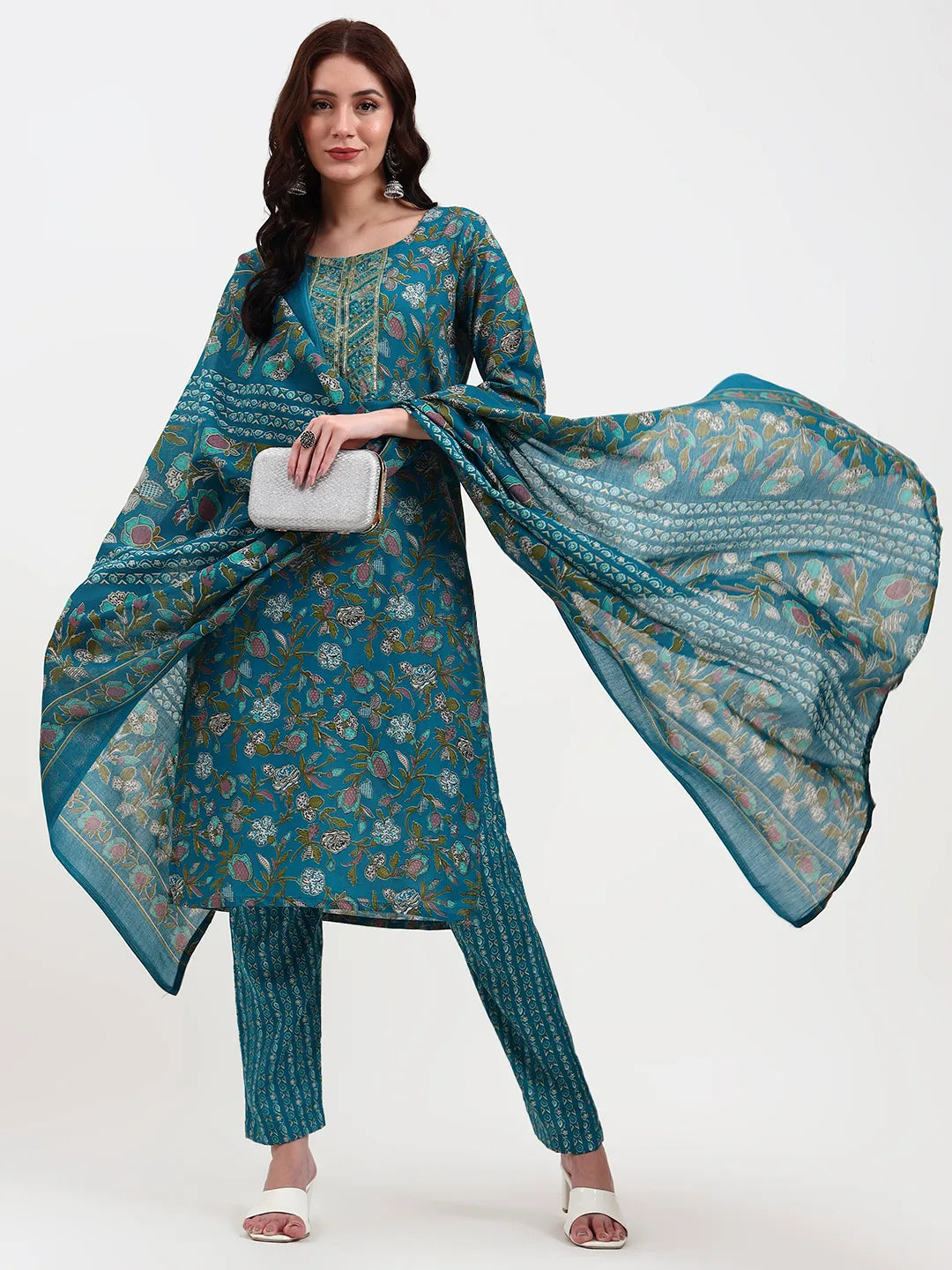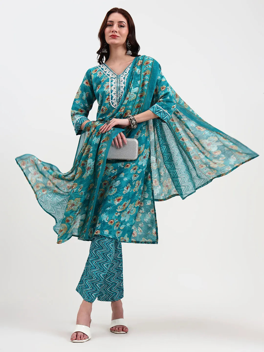 Purple Dori Embroidery A-Line Kurta Trouser Dupatta Set