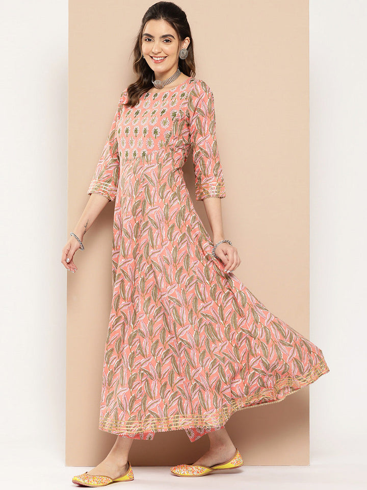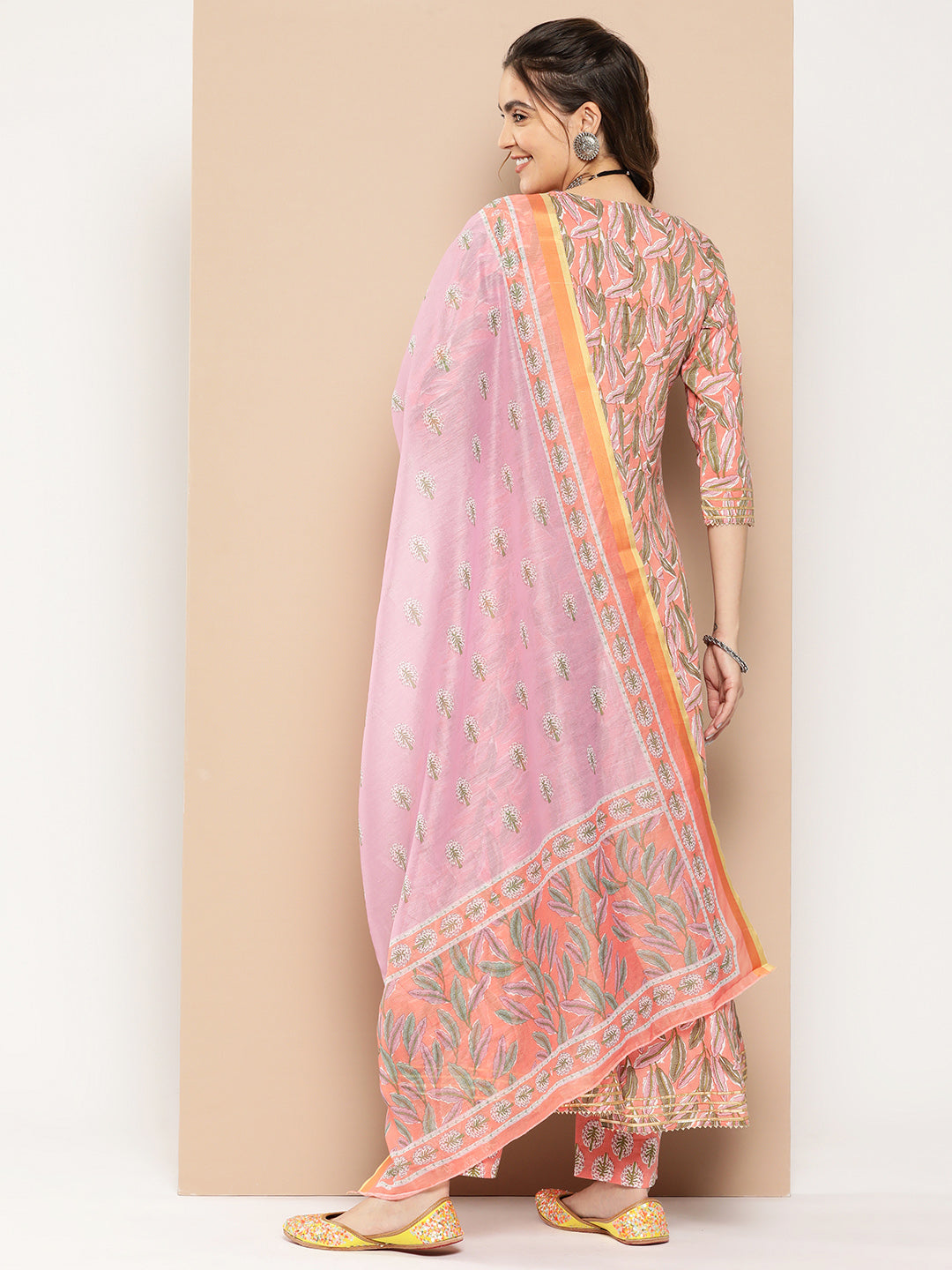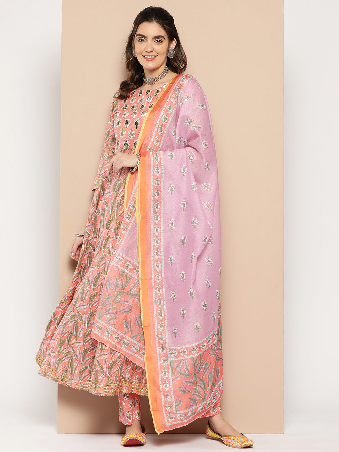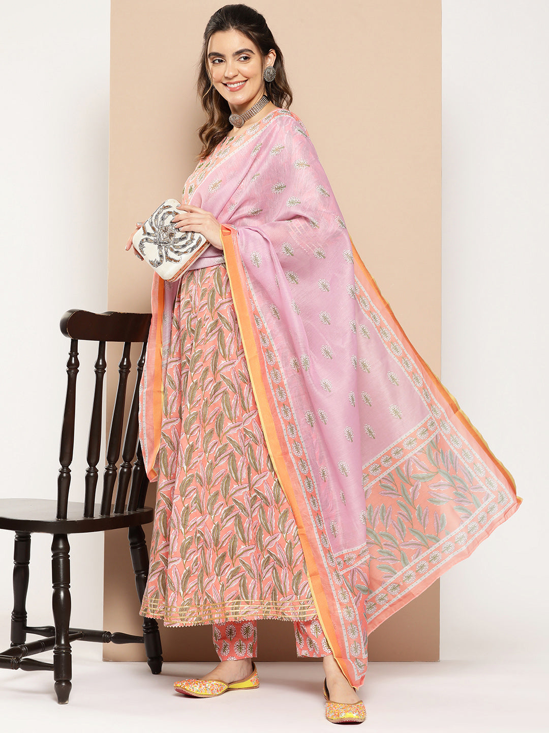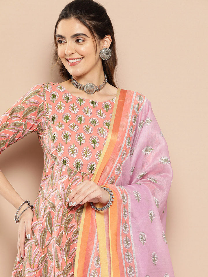 Peach Printed Dupatta Set-Yufta Store-2339SKDPCS