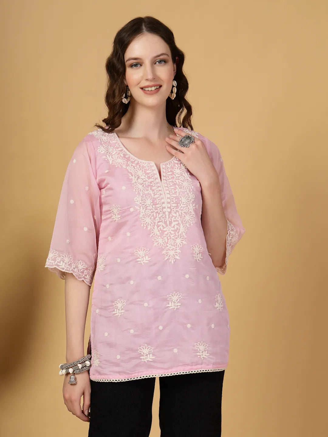Pink Organza Top-Yufta Store-6463TOPPKS