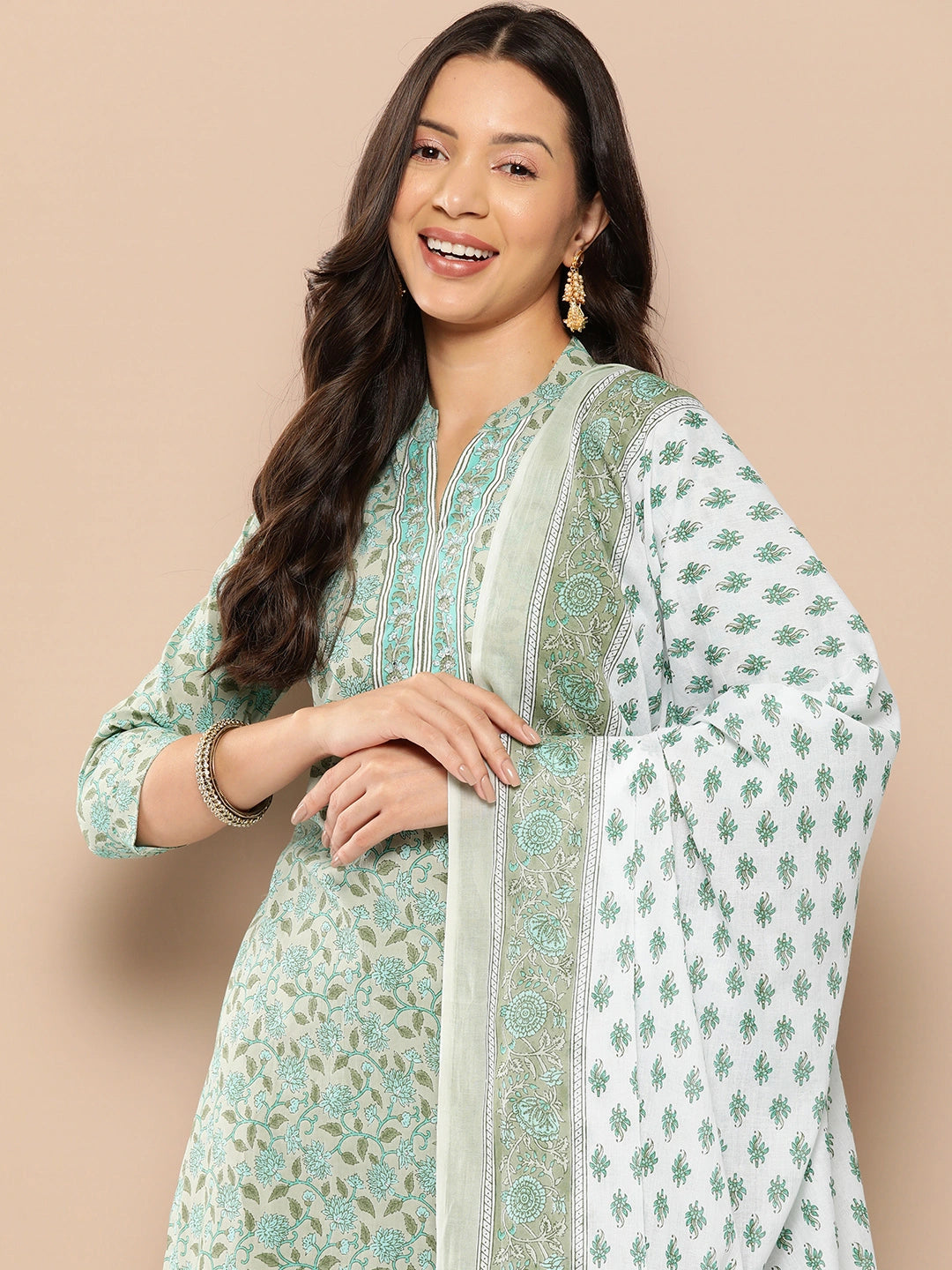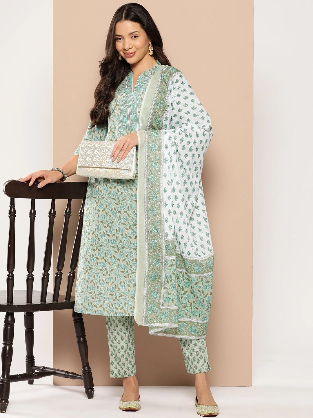 This Straight offer a contemporary twist, blending traditional elements with a chic, modern flair. Whether you're attending a family gathering, a cultural event, or simply desire to elevate your everyday look, this green floral printed regular pure cotton kurta with trousers & with dupatta is sure to make you the center of attention. Order yours today and unlock a world of stunning, confident style.