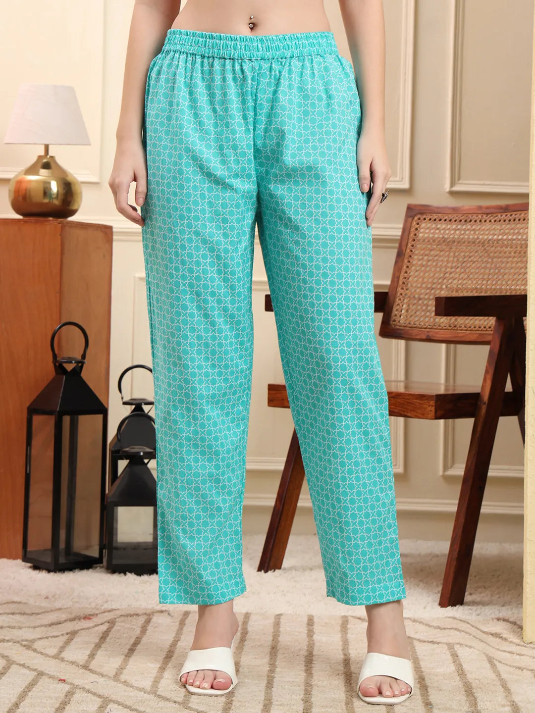 Blue Pure Cotton Floral Thread Work Anarkali Kurta Trouser Dupatta Set