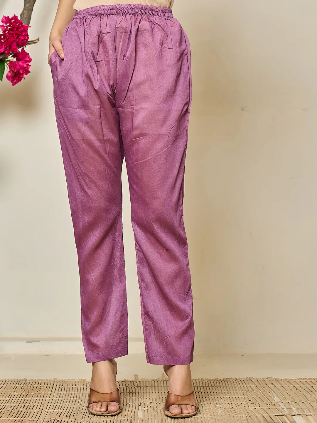Cotton purple Kurta Dupatta Pant Set A387SKDPR