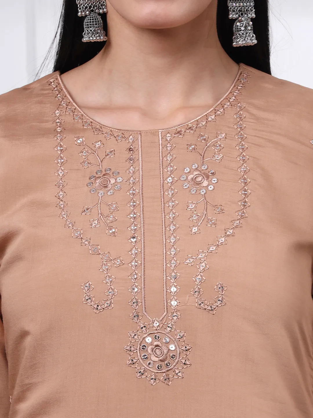 Beige Slik Blend Straight Kurta Dupatta Pant Set Cotton Lining Kurta
