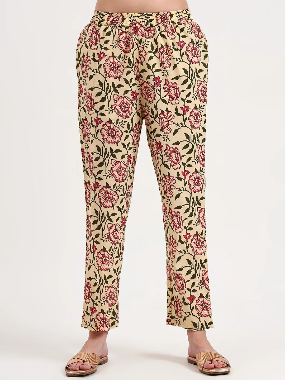 Beige Pure Cotton Sequins Work Straight Kurta Trouser Dupatta Set