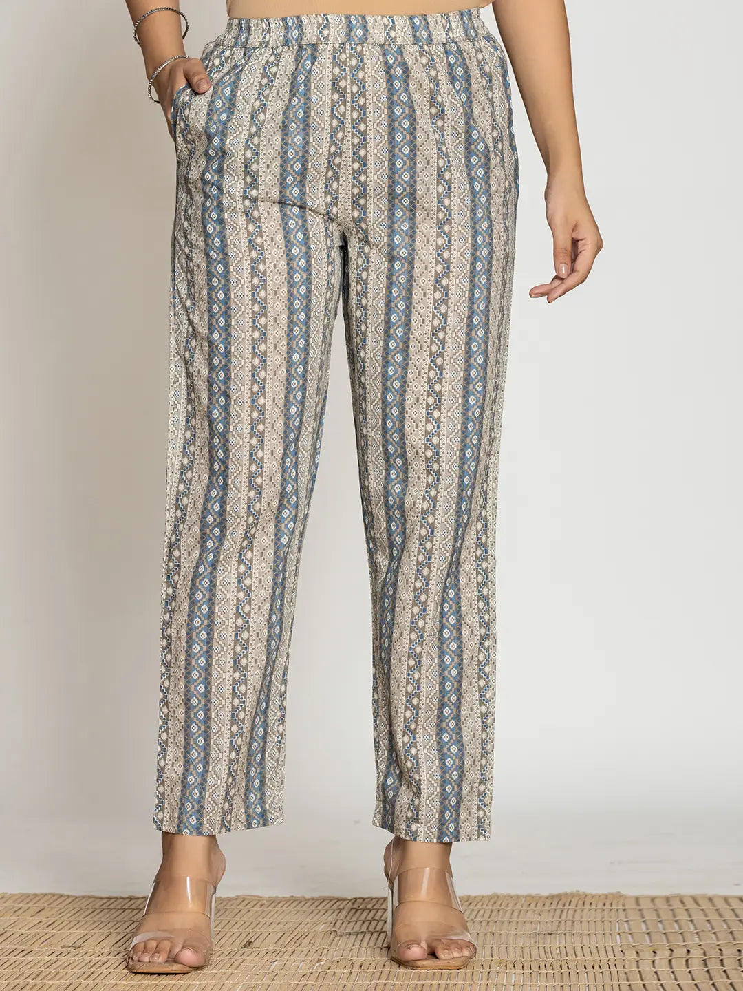 Embrace sophistication with this blue and off-white Pakistani-style kurta dupatta set. The intricate design and soft cotton fabric offer a graceful blend of comfort and tradition. Whether for festive occasions or everyday wear, this set is effortlessly stylish. Style it with classic kolhapuris and oxidized jewelry for a chic ethnic appeal.
