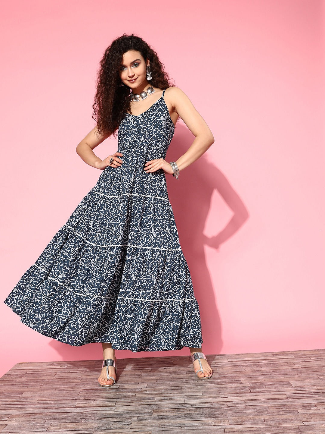 A perfect fusion of tradition and modernity. This chic floral cotton maxi dress is designed for the stylish woman who values comfort and elegance. The intricate patterns and premium fabric make it a standout piece. Add a touch of glamour to your wardrobe with cotton dresses for ladies.