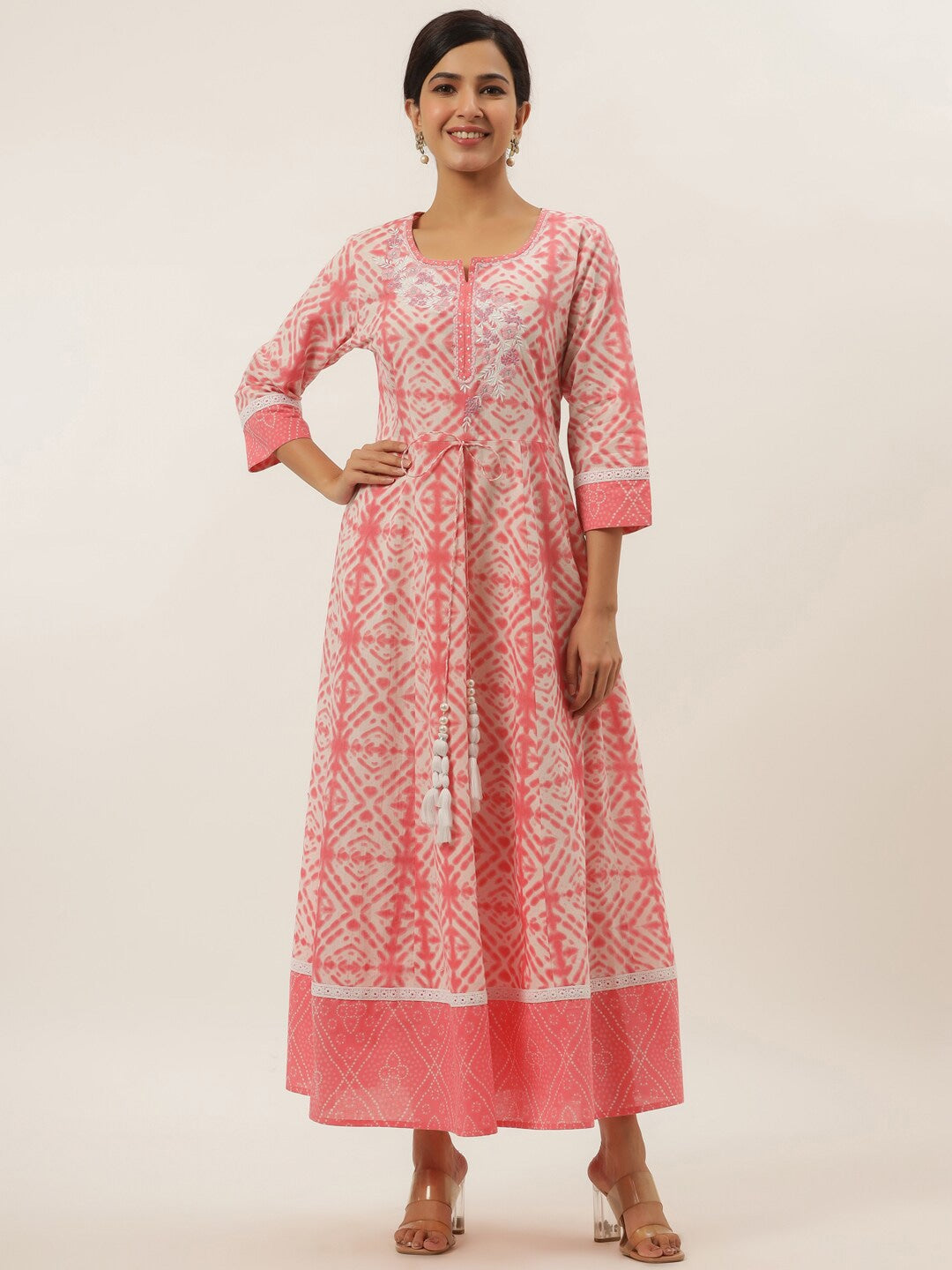A masterpiece of ethnic fashion. This peach ethnic motifs maxi dress combines traditional aesthetics with modern design, offering a unique and stylish look. Made with high-quality fabric, it ensures comfort and elegance. Embrace the sophistication of cotton dresses for women with this stunning piece.
