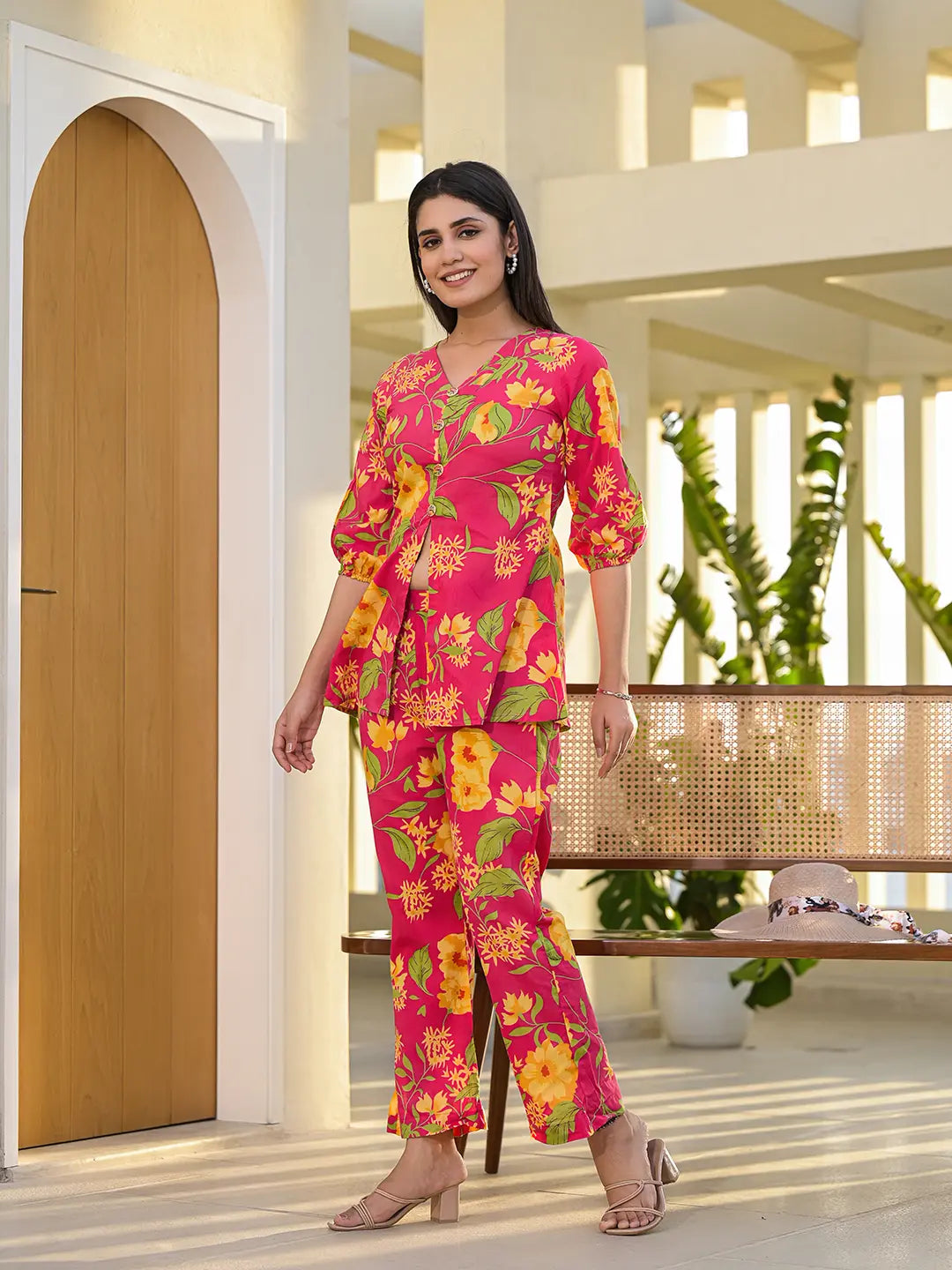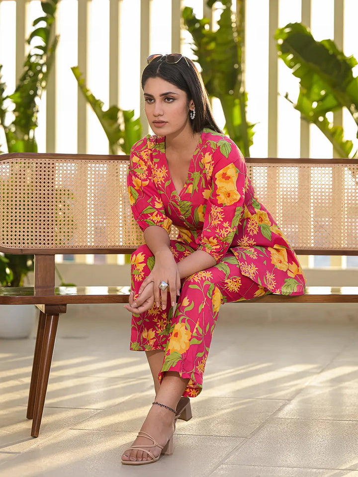 Pink Cotton Ethnic Motifs Print Co Ord Set