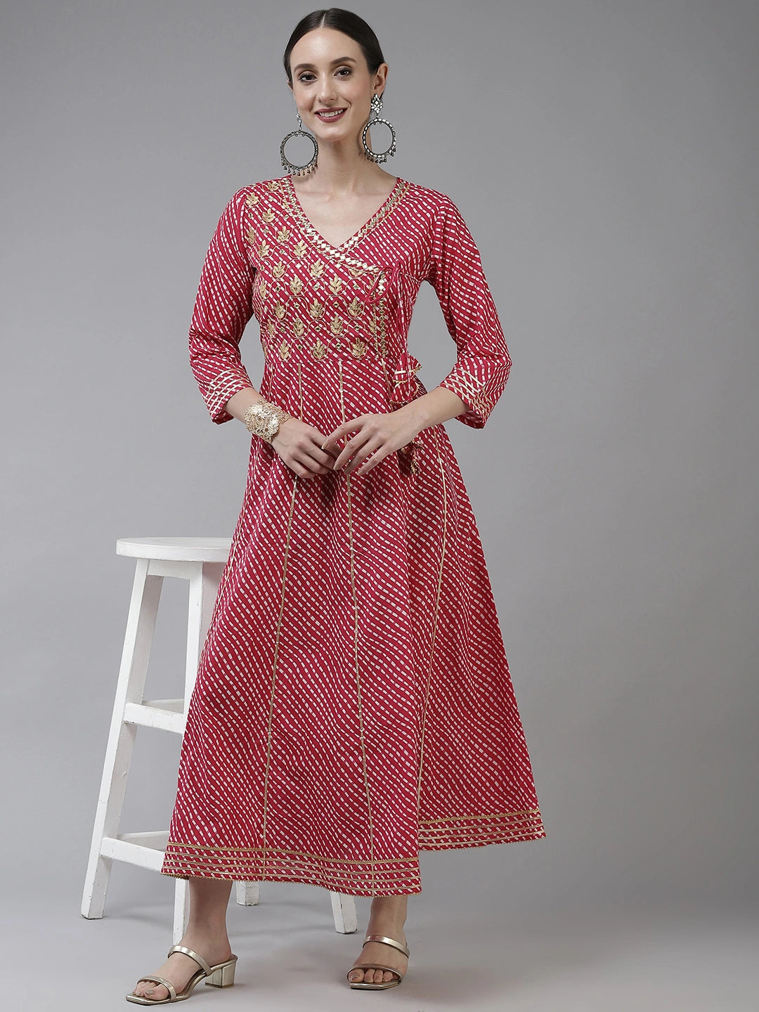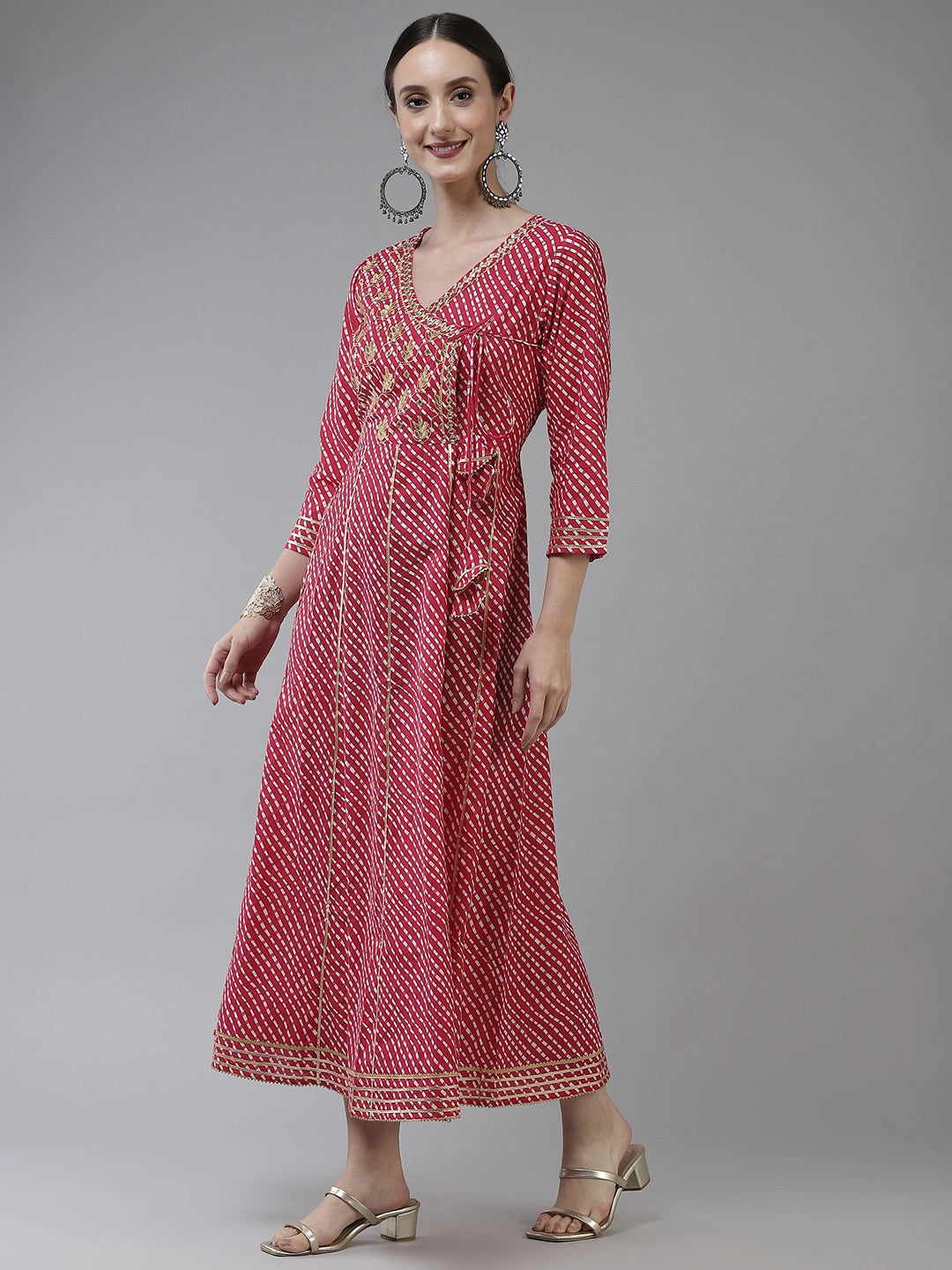 Pink Ethnic Motifs Maxi Dress-Yufta Store-9778DRSPKS