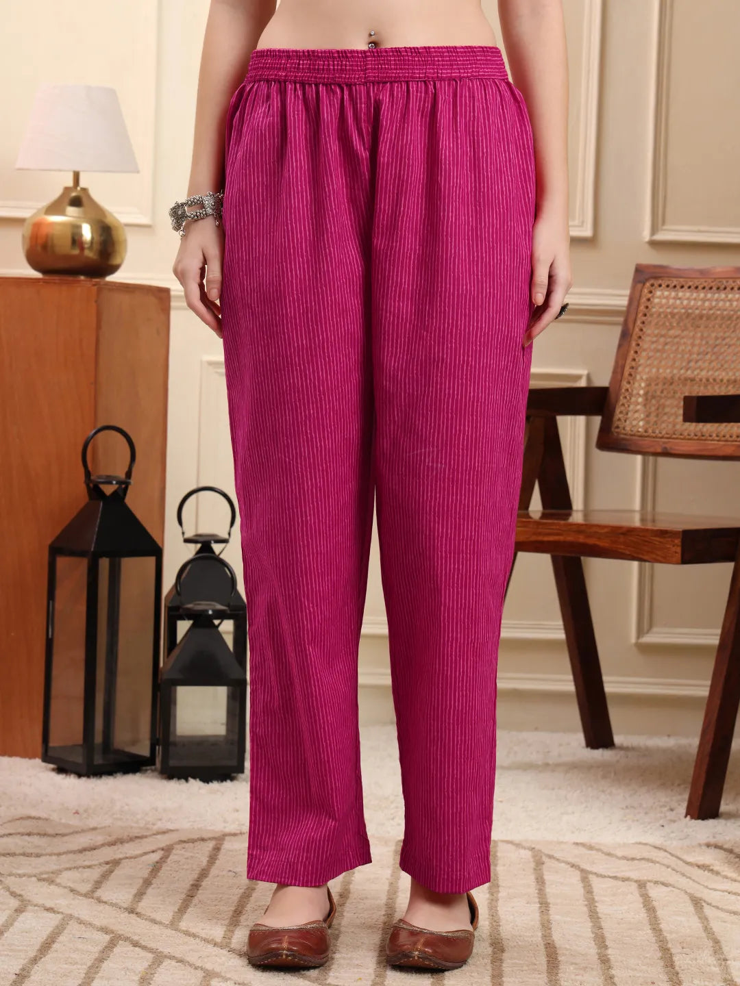 Pink Pure Cotton Thread Work Anarkali Kurta Trouser Dupatta Set
