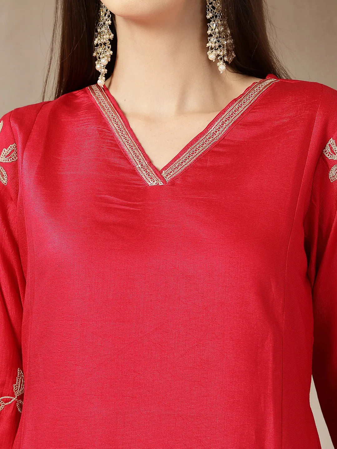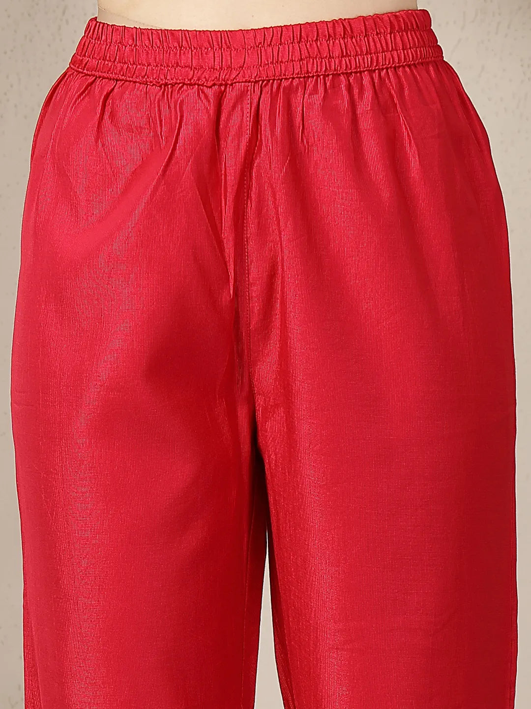 Pink Vatican Silk Dori Embroidery Mirror Work Kurta Trouser Dupatta Set