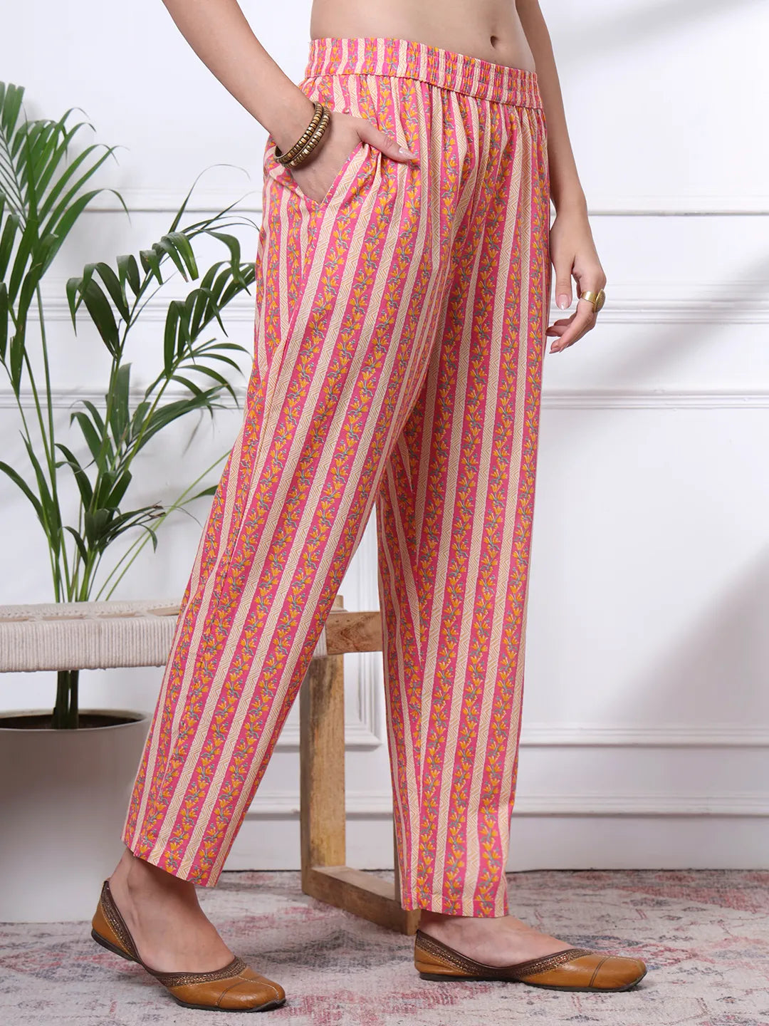 Pink Pure Cotton Floral Sequins Work Kurta Dupatta Pant Set