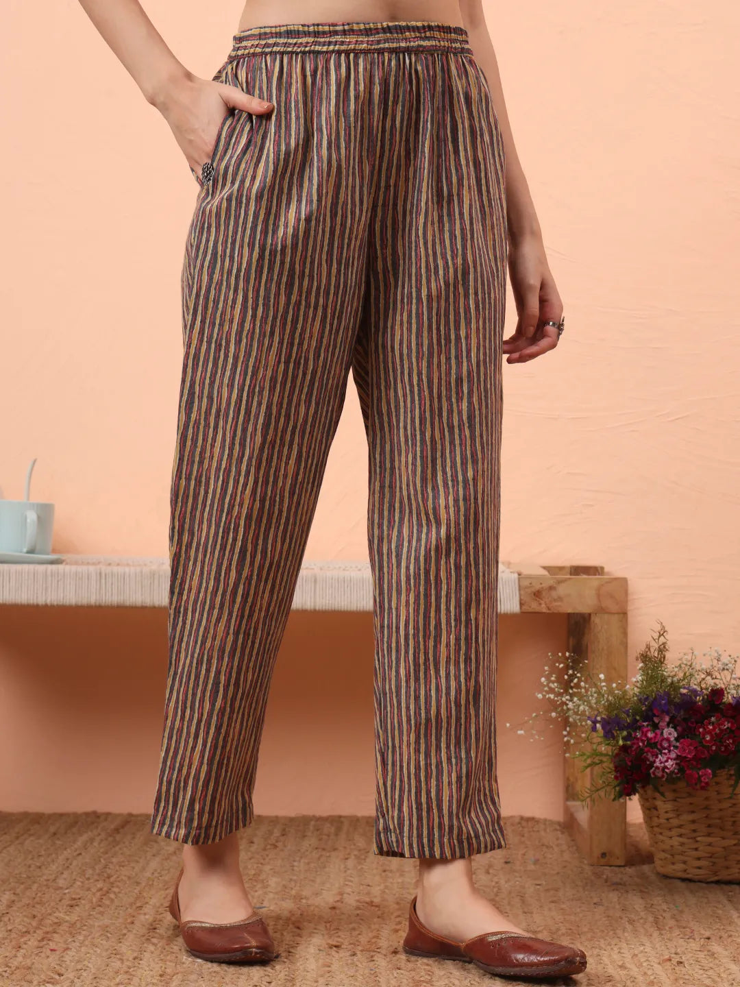 Grey Pure Cotton Mirror Work Kurta Dupatta Pant Set