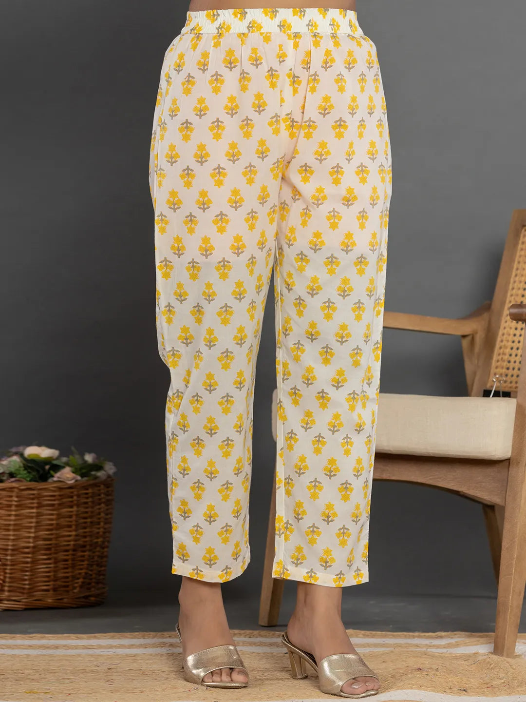 Mustard Beads & Stones Cotton Anarkali Kurta Dupatta Pant Set-Yufta Store-7165SKDMSS