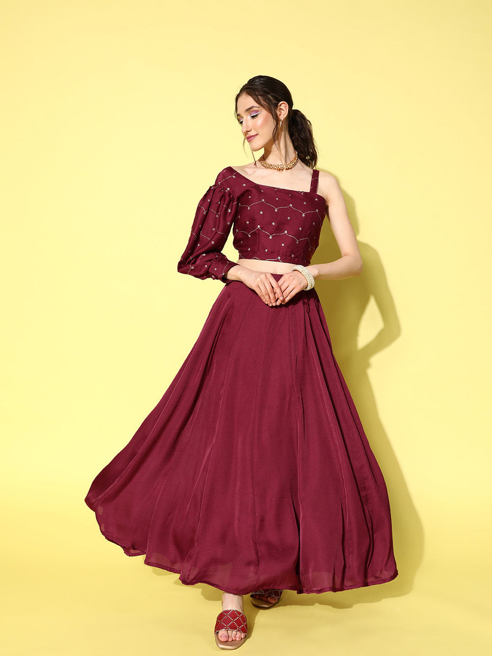 Women Lehriya Print Top With Skirt-Yufta Store-8124CRDPKS