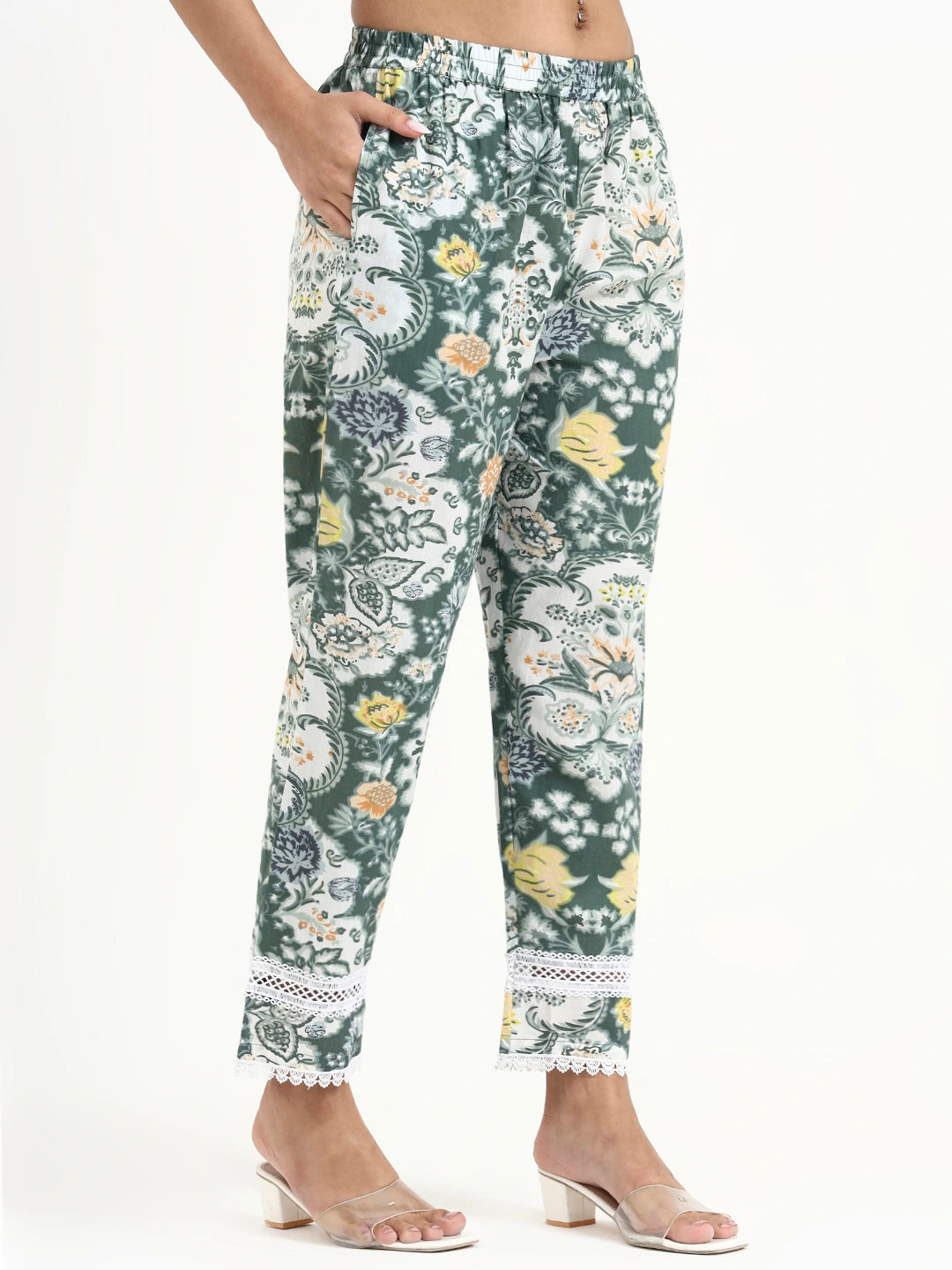 Green And White Cotton Pakistani Style Kurta Dupatta Set
