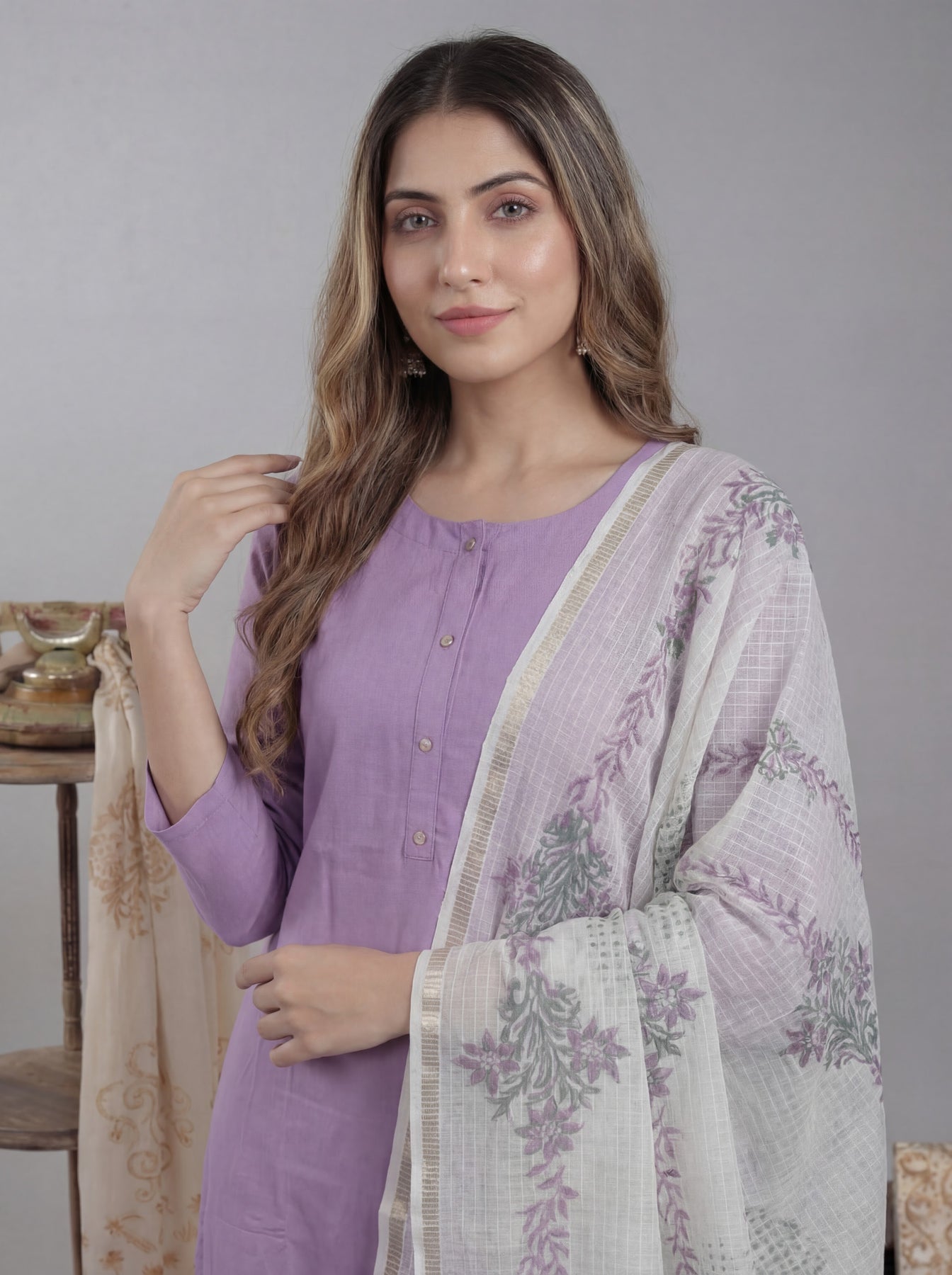 Step into easy summer elegance with this lavender straight-fit viscose-silk kurta, paired with a handcrafted hand-block printed dupatta. Soft, flowy, and refined — perfect for daily wear, office, and festive occasions.