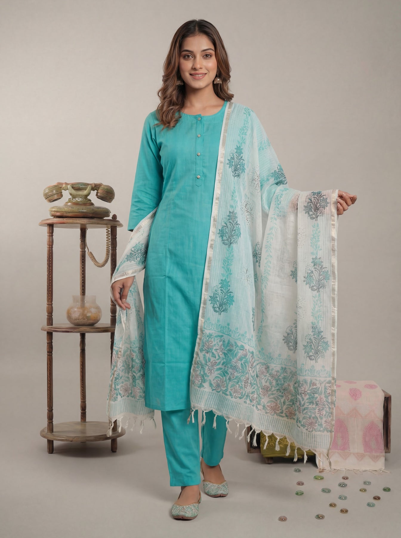 Step into easy summer elegance with this sky blue straight-fit viscose-silk kurta, paired with a handcrafted hand-block printed dupatta. Soft, flowy, and refined — perfect for daily wear, office, and festive occasions.
