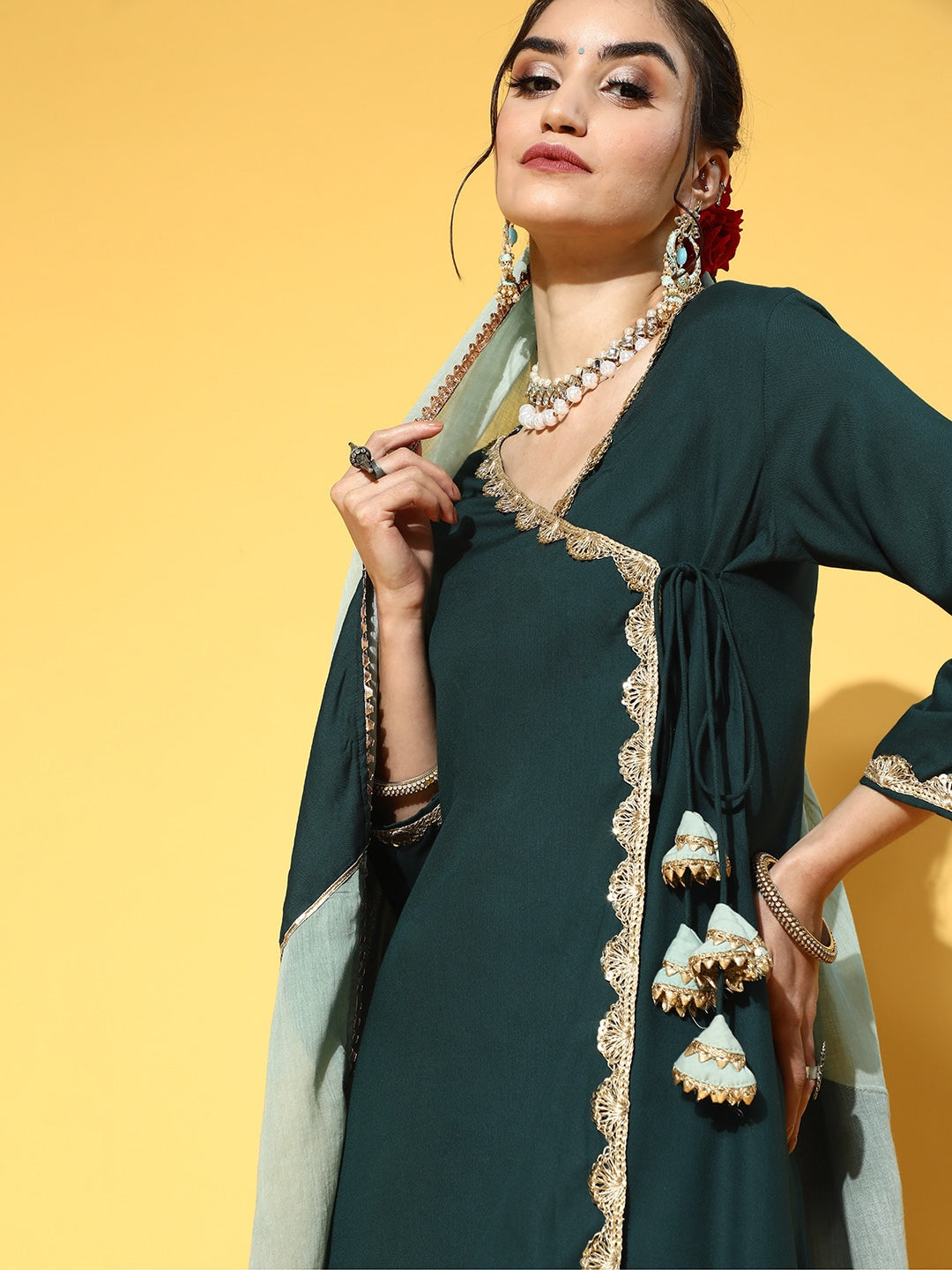 Teal Green Angrakha Dupatta Set