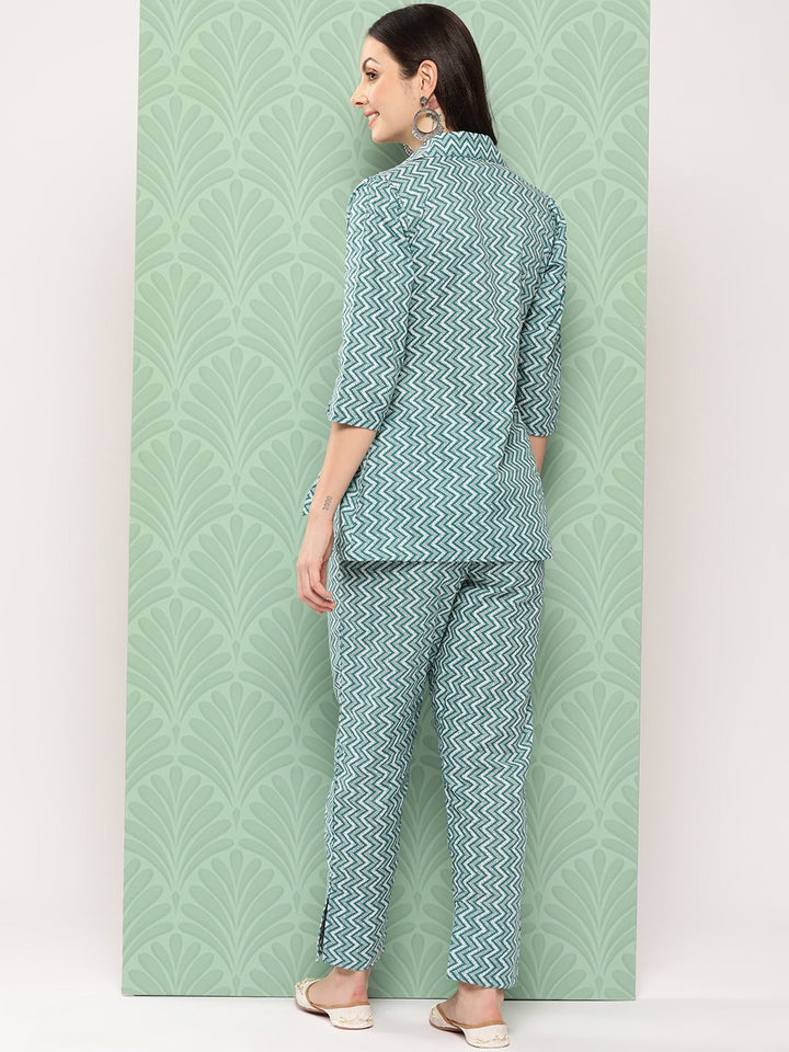 Teal Green Printed Pure Cotton Top with Trousers-Yufta Store-1461CRDTGS