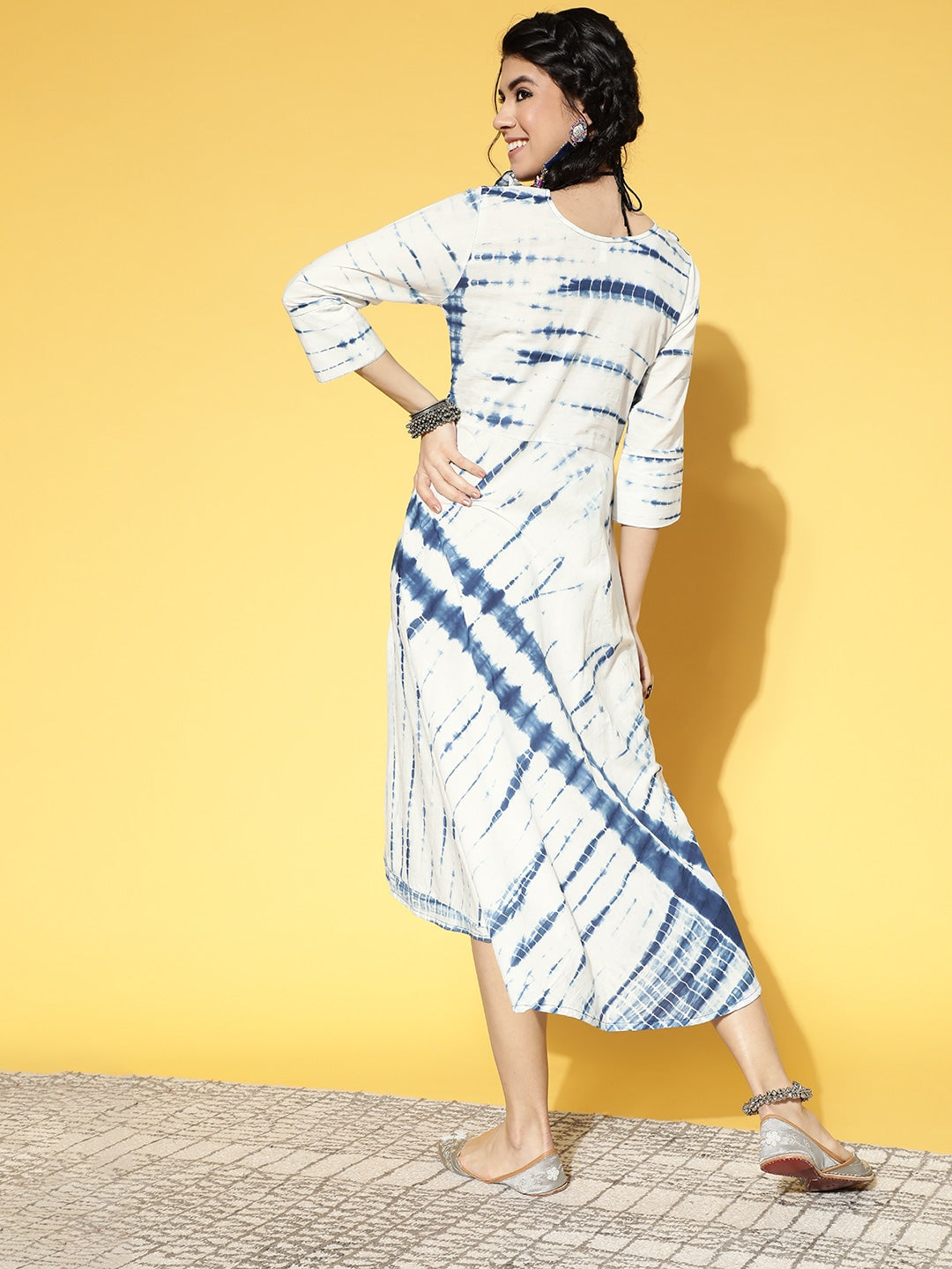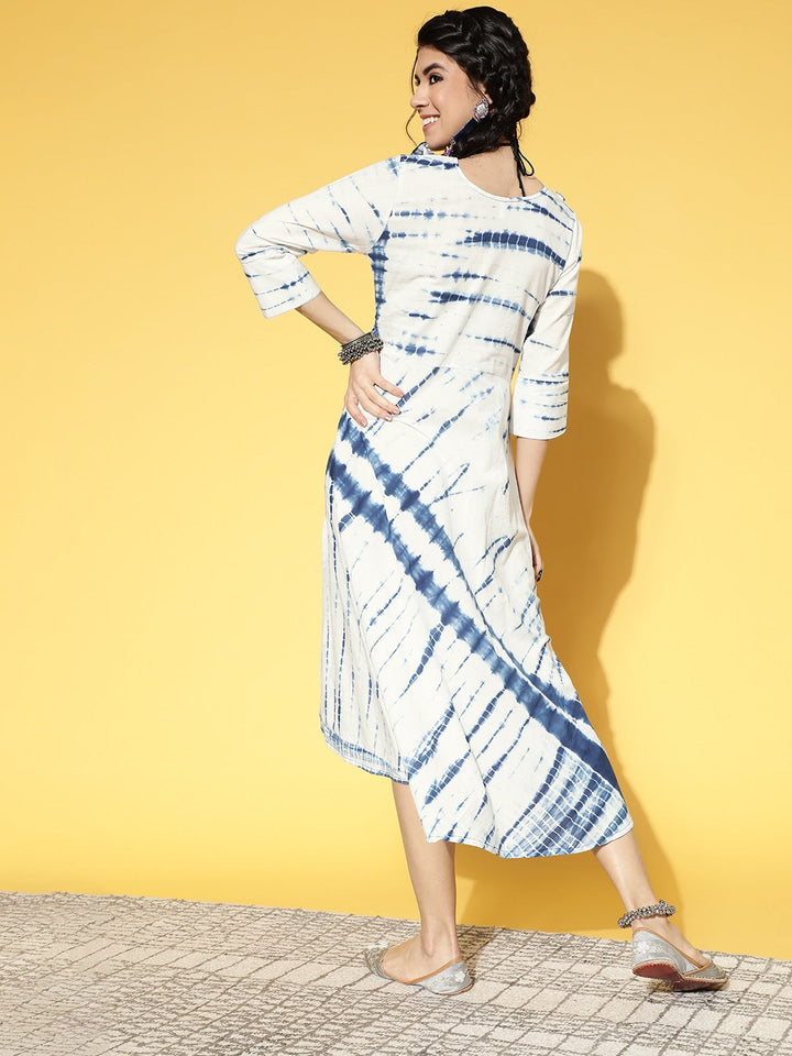 White & Blue Tie-Dyed Dress-Yufta Store-9576DRSWHS